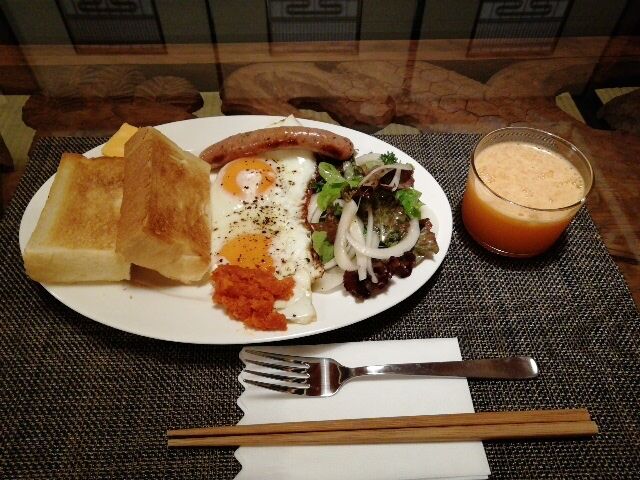 6時に別棟の食堂に行って、朝食をいただく。
