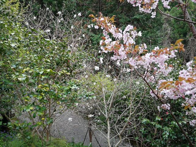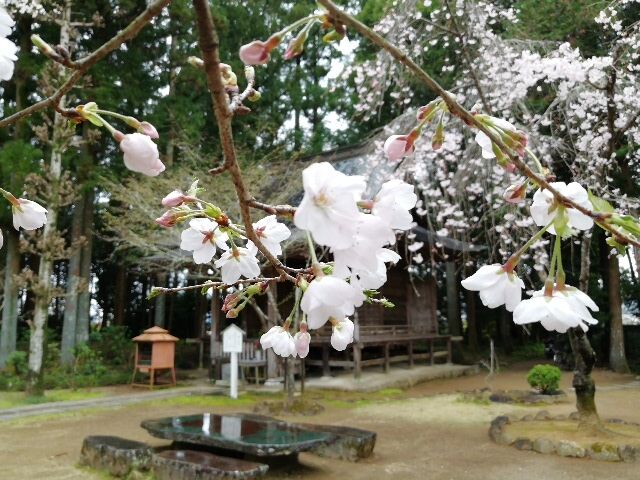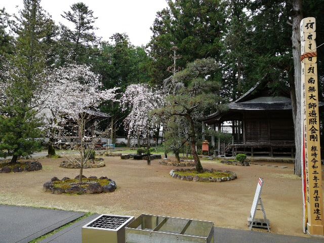 爪彫薬師堂へは行かなかったが、入り口のモミジのさ緑と桜がきれいだった。