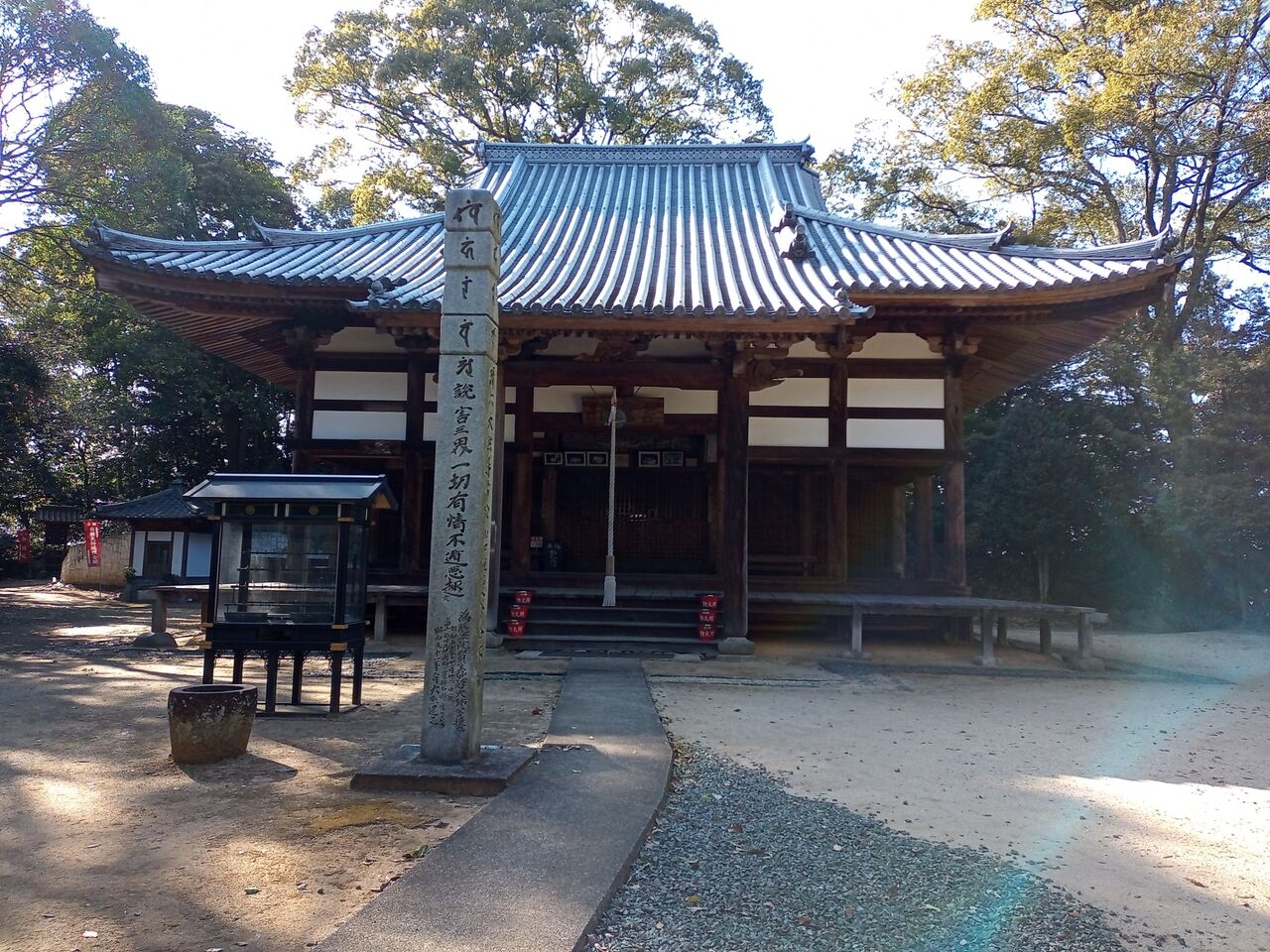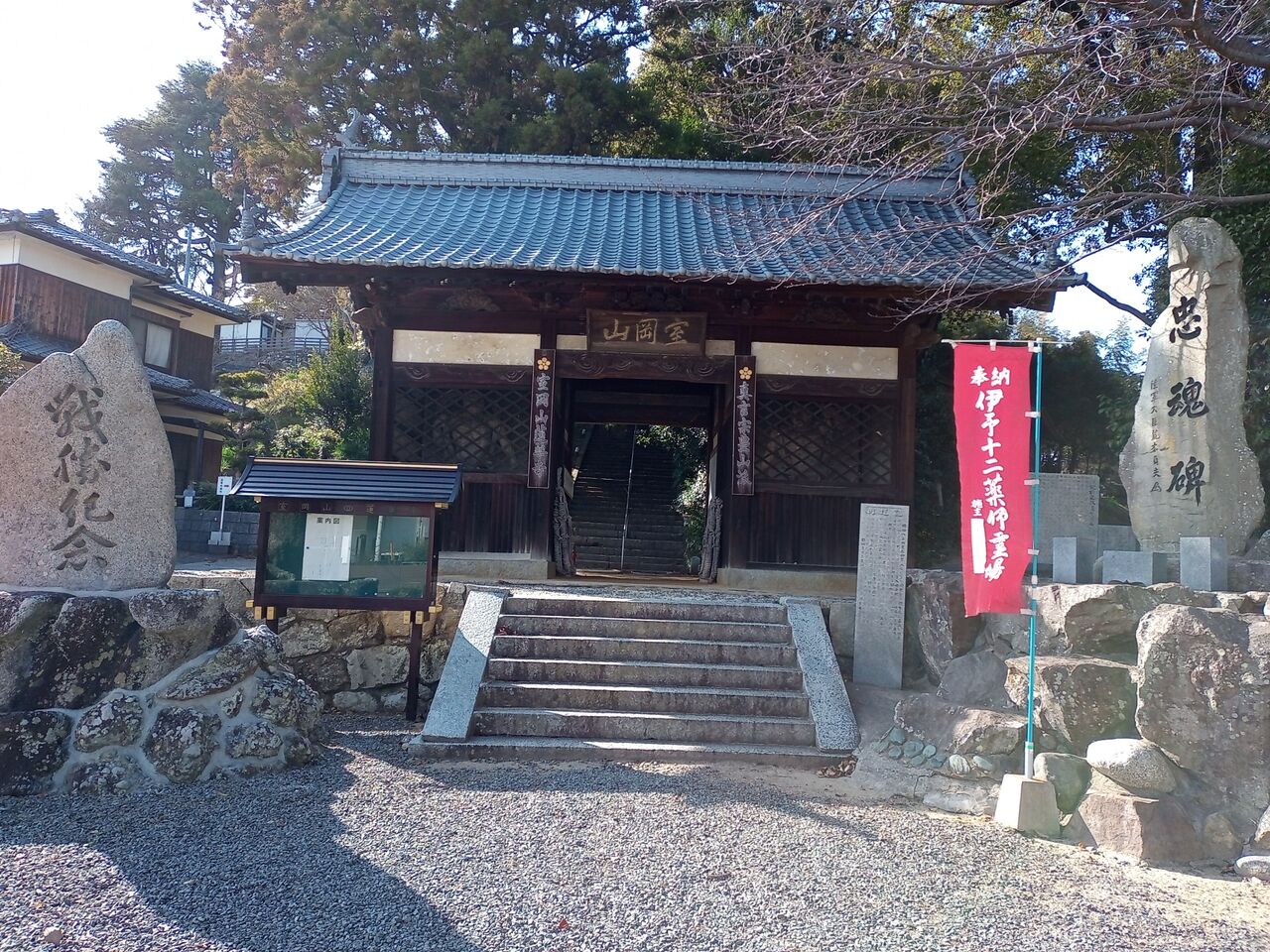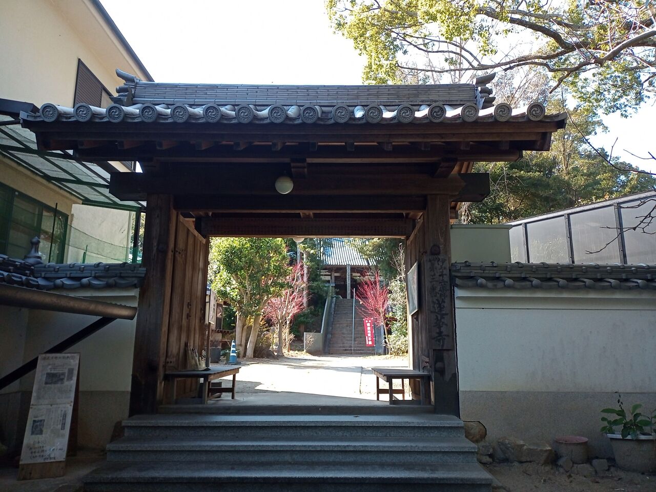 2022年02月18日 蓮華寺まで 四国八十八ヶ所番外のお寺、蓮華寺に初めて行ってきた。お遍路で、石手寺から太山寺に行く時に寄ろうと思うが、家が近いので、また何時でも来れると思って、行ったことがなかった。今日は風は冷たいものの、お天気がよかったので、散歩がてら行ってきた。家から1,2キロ、20分もあれば行ける。サンヤ袋も持って行って、お参りして、納経もしてもらった。山門中門鐘楼本堂の前に着くと、お経が流れてきた。ご本尊さんは、薬師如来さん。大師堂遠くに、太山寺方面の向こうに海も見える。蓮華寺は、伊予十二薬師、松山新四国の札所でもあるらしい。次の太山寺への道標。何だか懐かしい字。はて、この春の本四国の続きはどうなりますか。