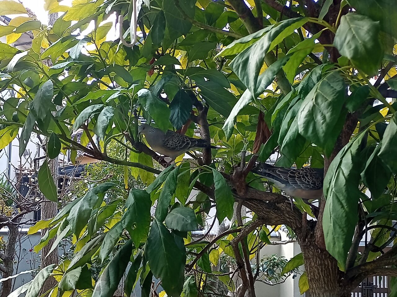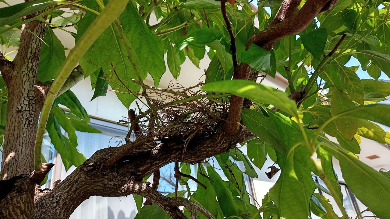 2022年02月20日 鳩が、、 鳩が巣を作っている。一昨日、鳩がアボカドの木に止まって、枝を咥えていた。その時はまだ巣のようなものはなかった。アボカドの木は家の窓から1メートルも離れていない。鳩は窓から正面に見える。今日見ると、巣のような物ができている。建築途上のようで、まだ、小枝のようなものが集められている感じだ。いろいろ考えて、引き取っていただくことにした。申し訳ないが、鳩がいないうちに、夫が撤去させていただいた。かわいそうだけど仕方ない。