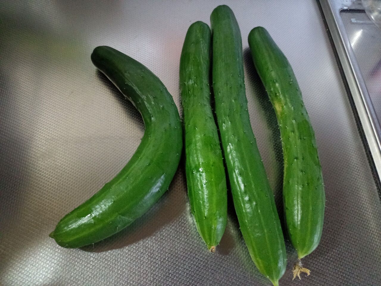 一昨日収穫したキュウリ4本。