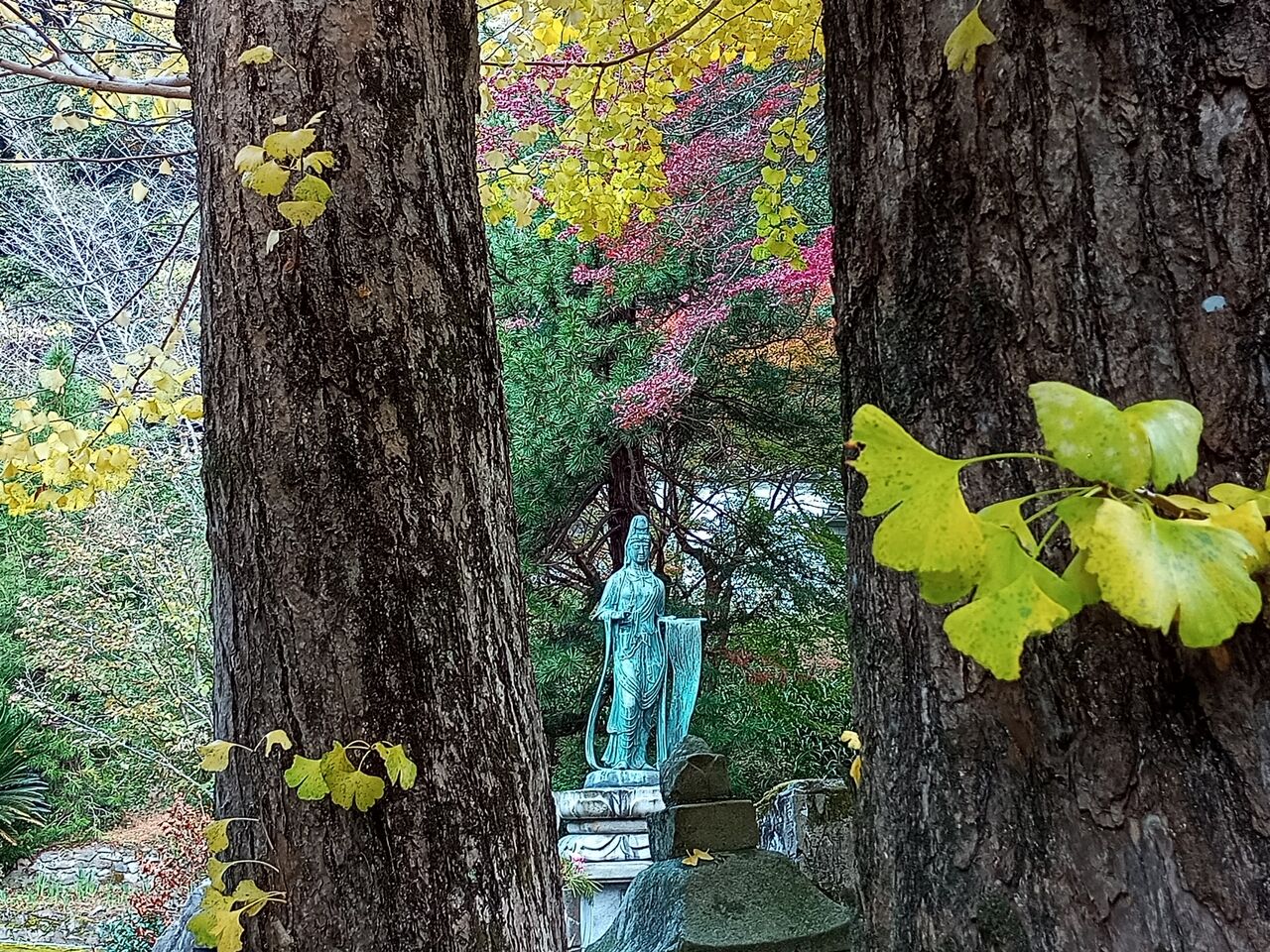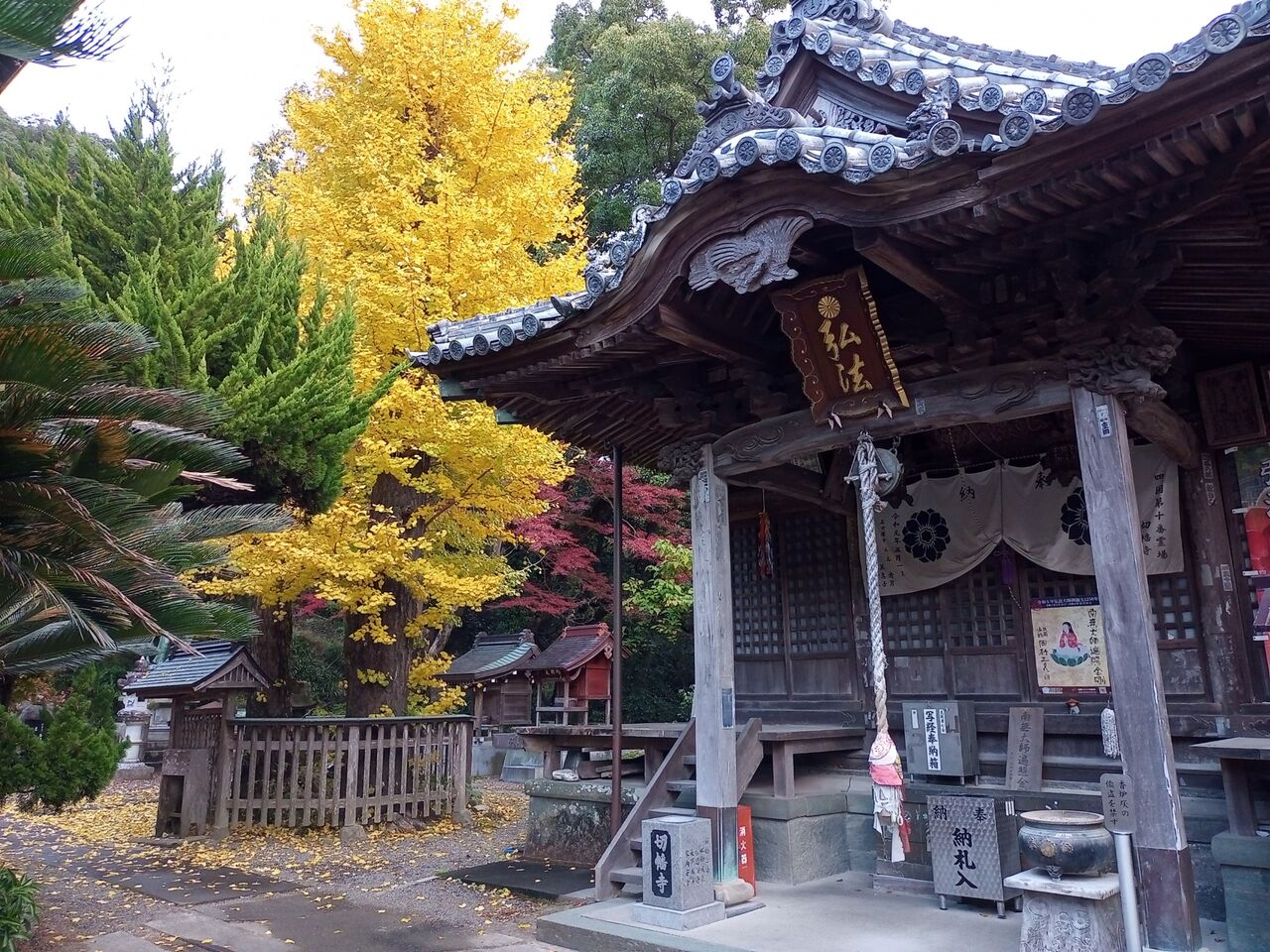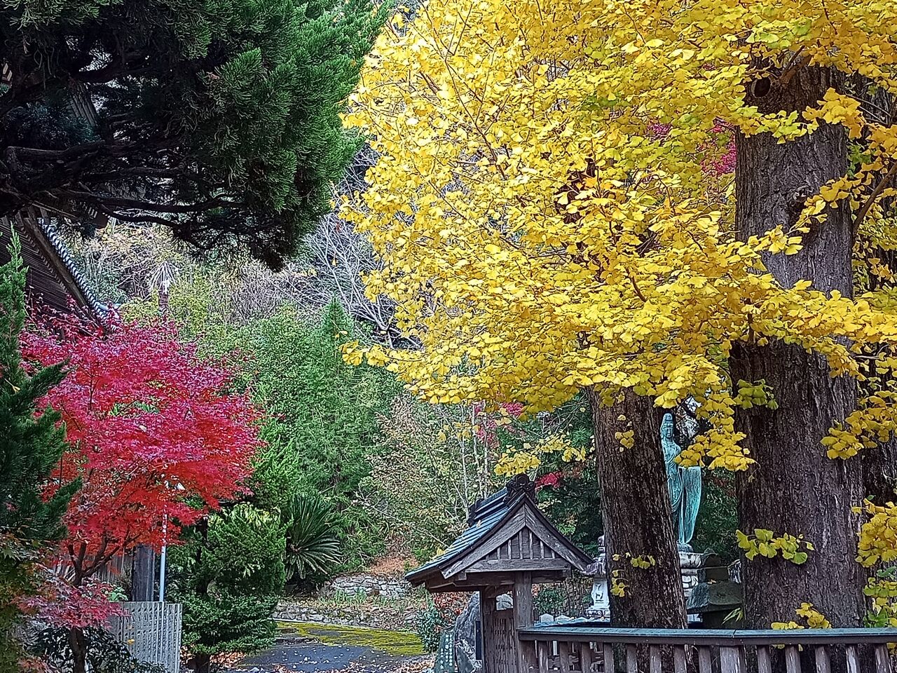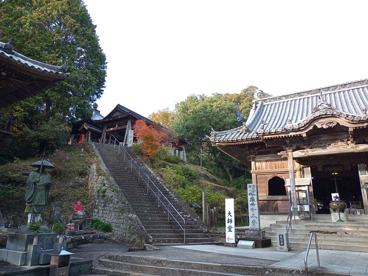 山門を入ろうとしていたら、お参りを終えた女性の方が出てこられて、お話しした。「車で廻っている。前回2月に来た。スタッドレスのタイヤで焼山寺とか廻った。今回、紅葉が見たくて来た。切り立った山の紅葉がみたいので、焼山寺を楽しみにしている。観光もしながら廻っている。」と、青森の方。