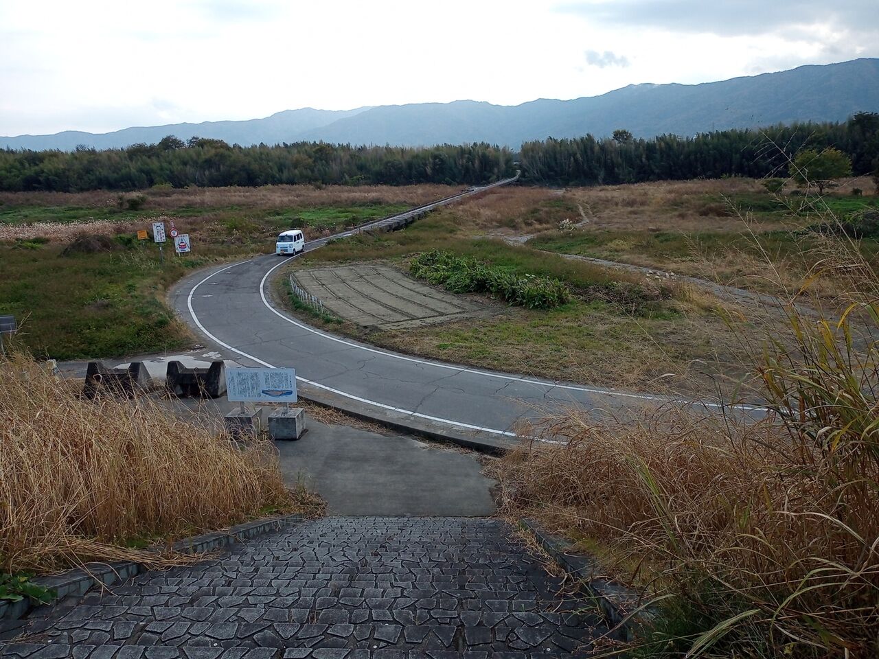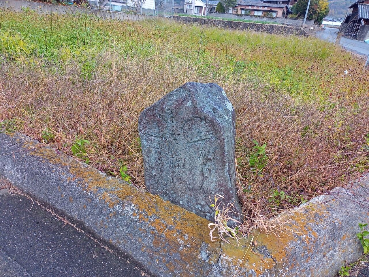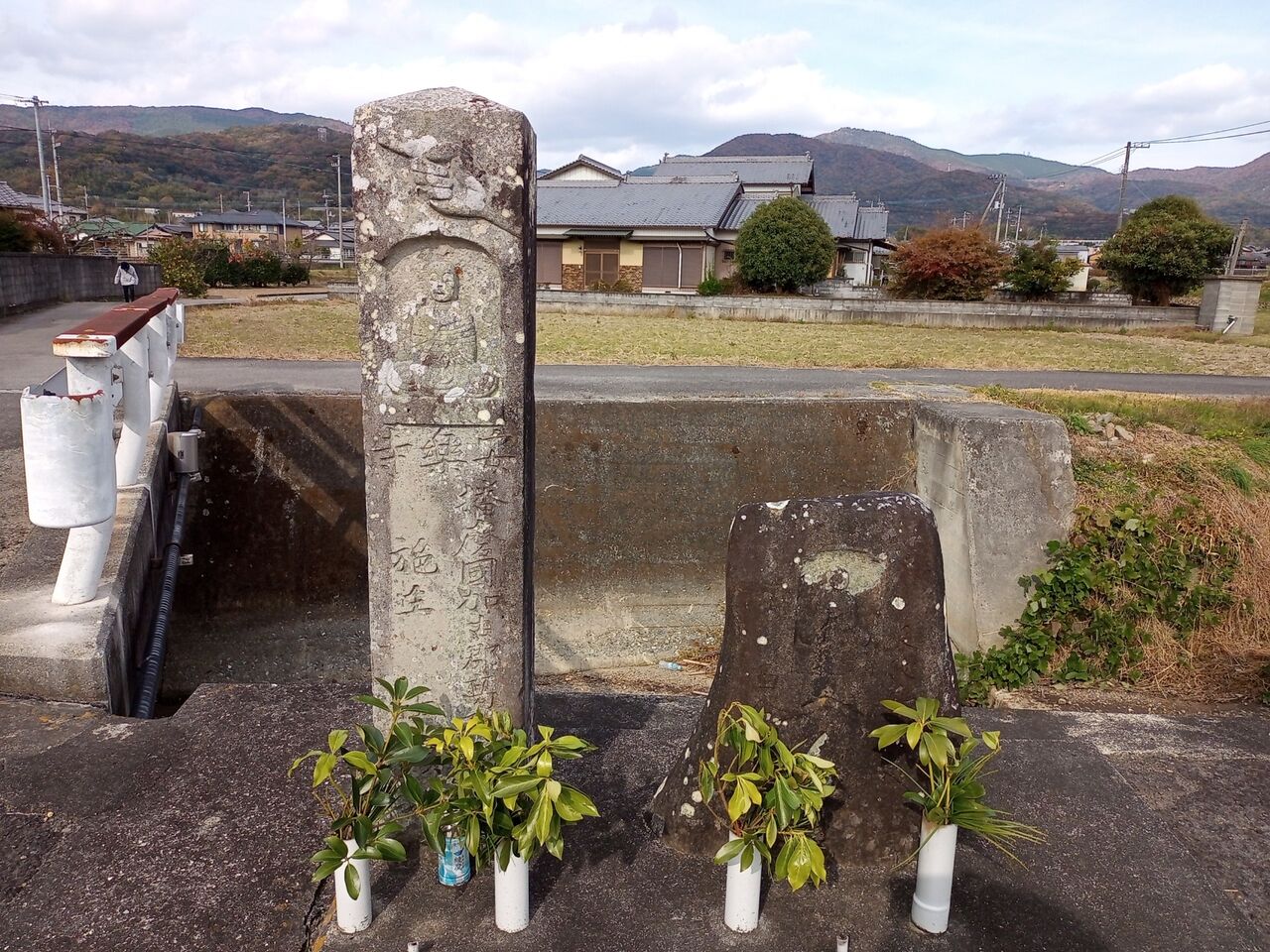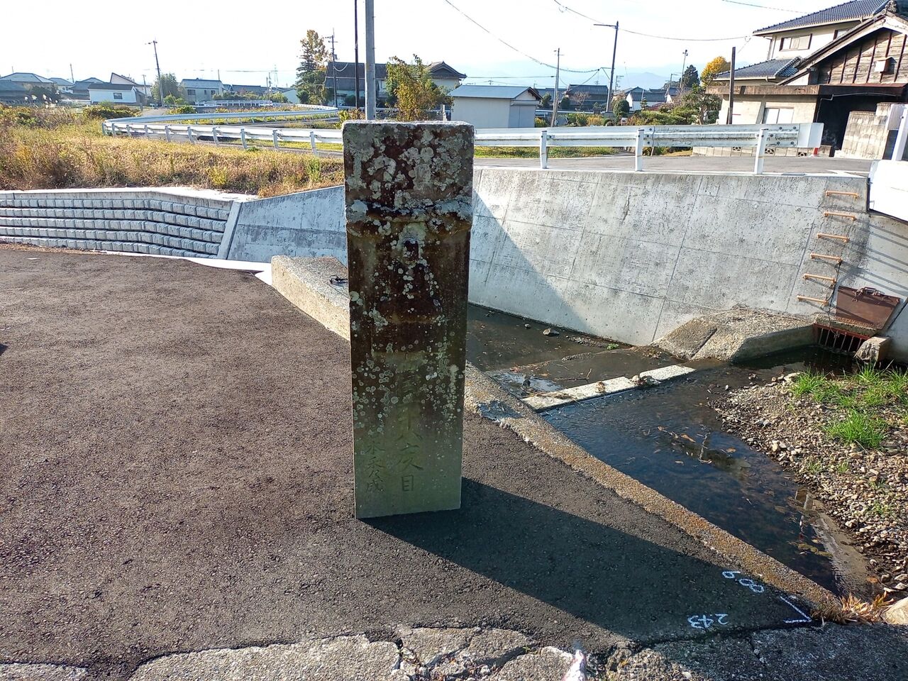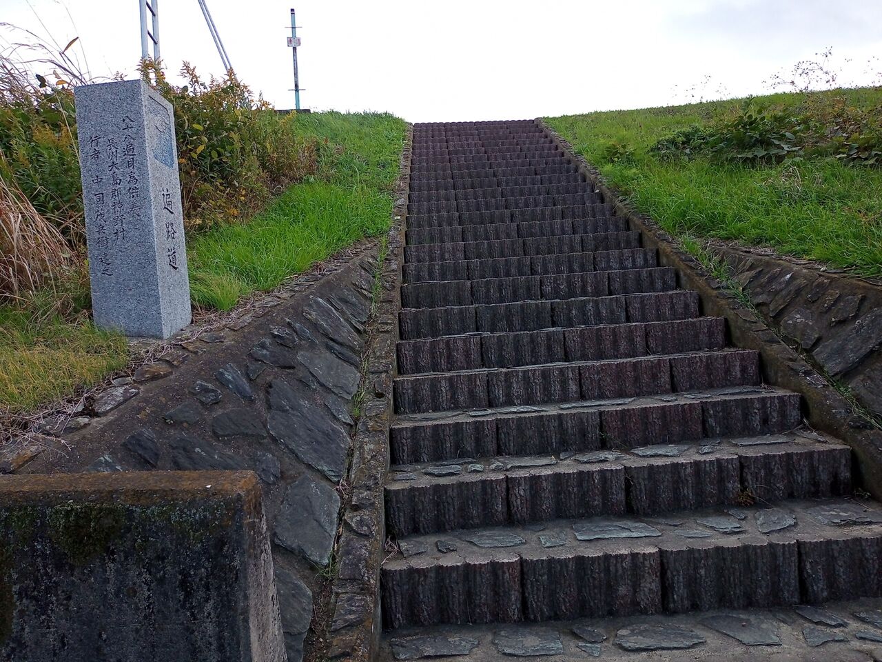 11:56 大野島橋への階段を上がる。レプリカの茂兵衛さんの標石。
