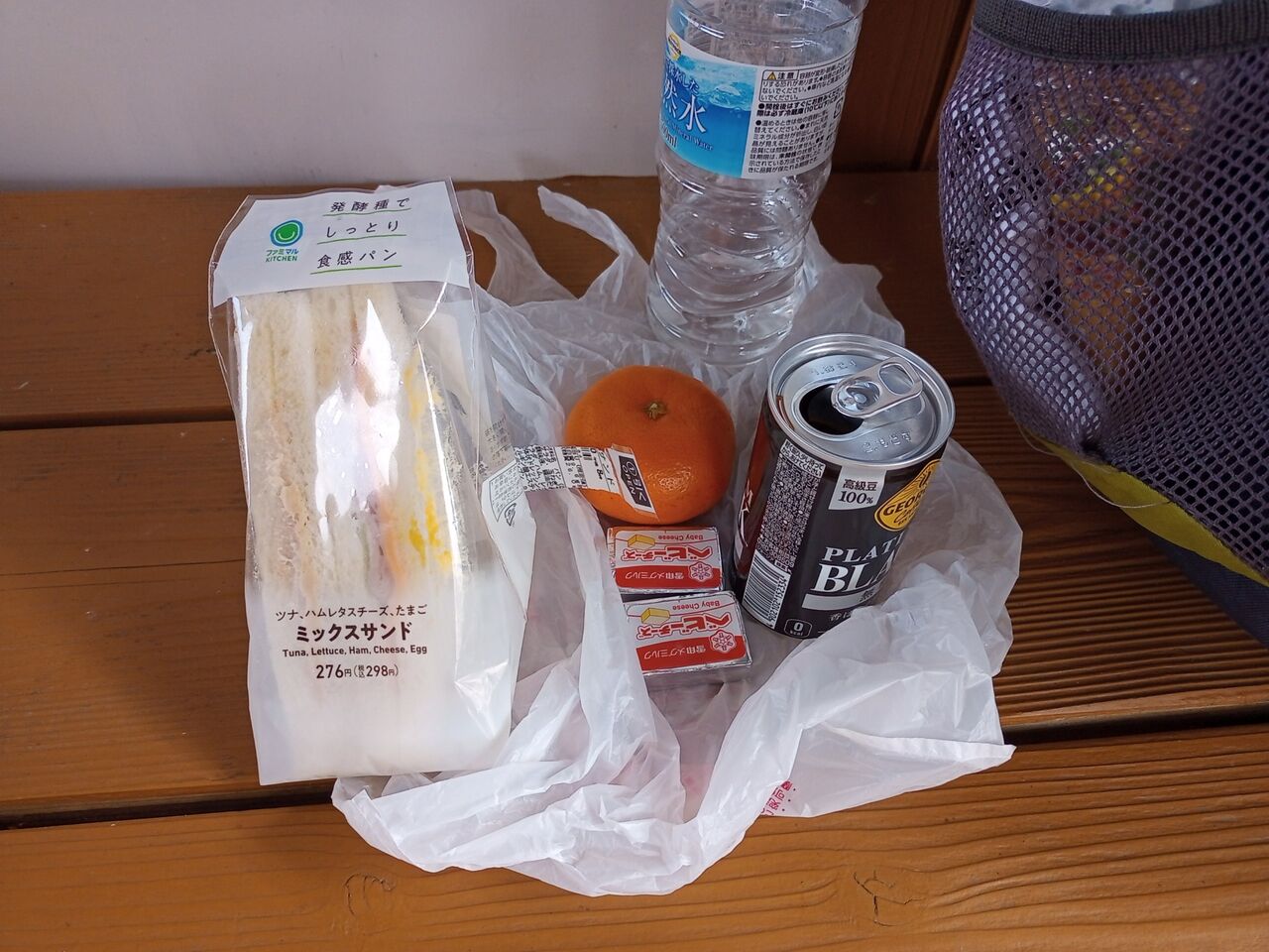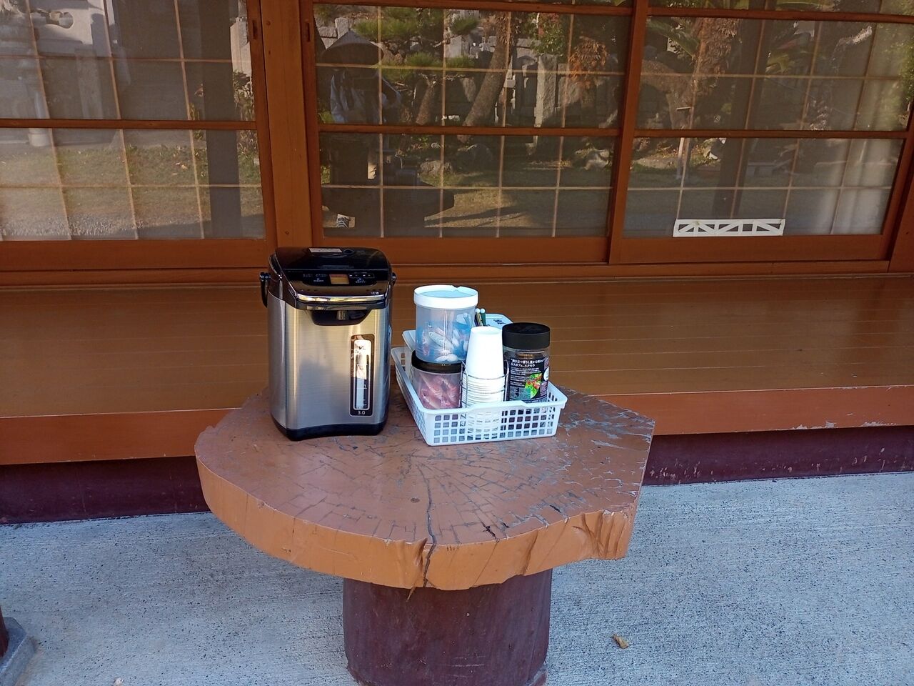 6:00 部屋で朝食。写真を撮り忘れた。湯を注ぐ豚汁、パン、柿、チーズにコーヒー。