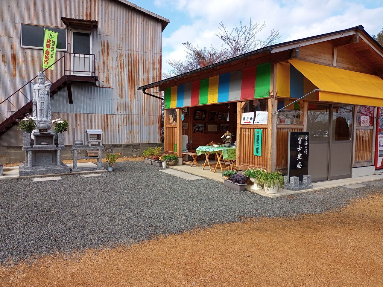 13:28 「富士建庵」というお接待所があった。昨年の春にできたらしい。中に、お茶やお菓子が置いてあった。裏にはトイレもあった。