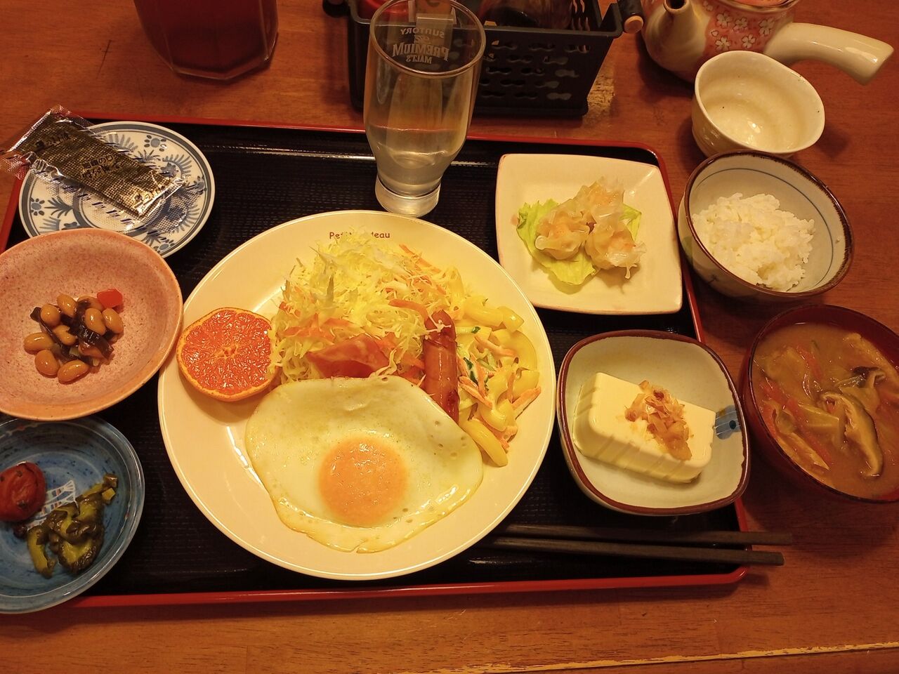 2食付7000円、お結び1個150円。洗濯機100円、乾燥機200円。WiFiあり。部屋に洗面台あり。