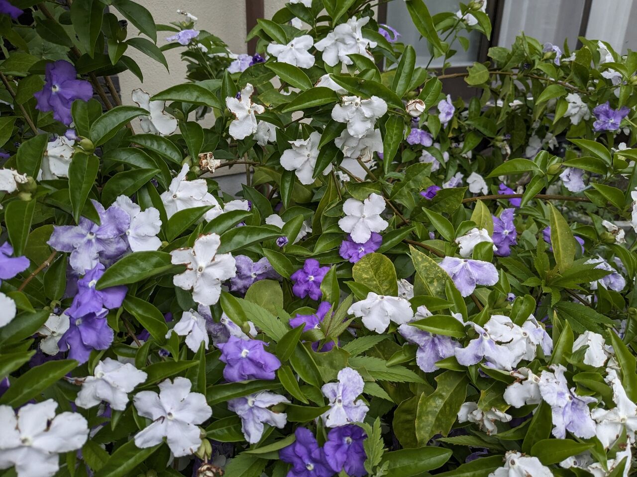 2024年05月08日 庭の様子 香りバンマツリは地植えしたら、大きくなった。いい香りがしている。オガタマはそろそろ終わり。バラはかなり切っても次から次に咲いていく。サツキは今年は花がいっぱいついた。そしてウツギもかわいい。スナップエンドウはそろそろ終わり。ワイルドベリーはボツボツ。ピーマン4株、キュウリ2株、ミニトマト2株植えた。インゲンの種を植えたいが、植えるところがない。あと、バジルの苗も植えたい。
