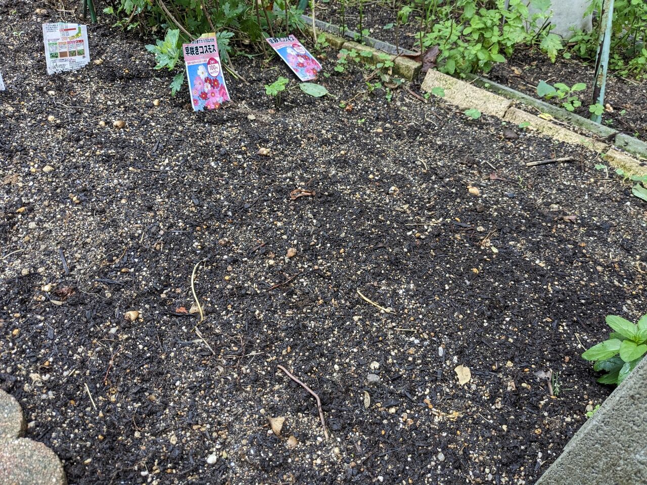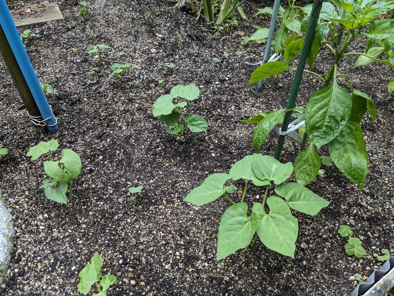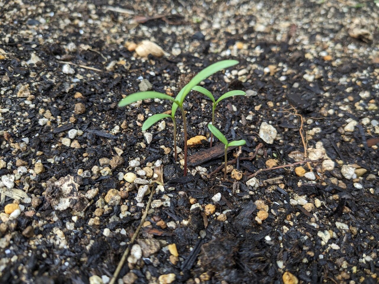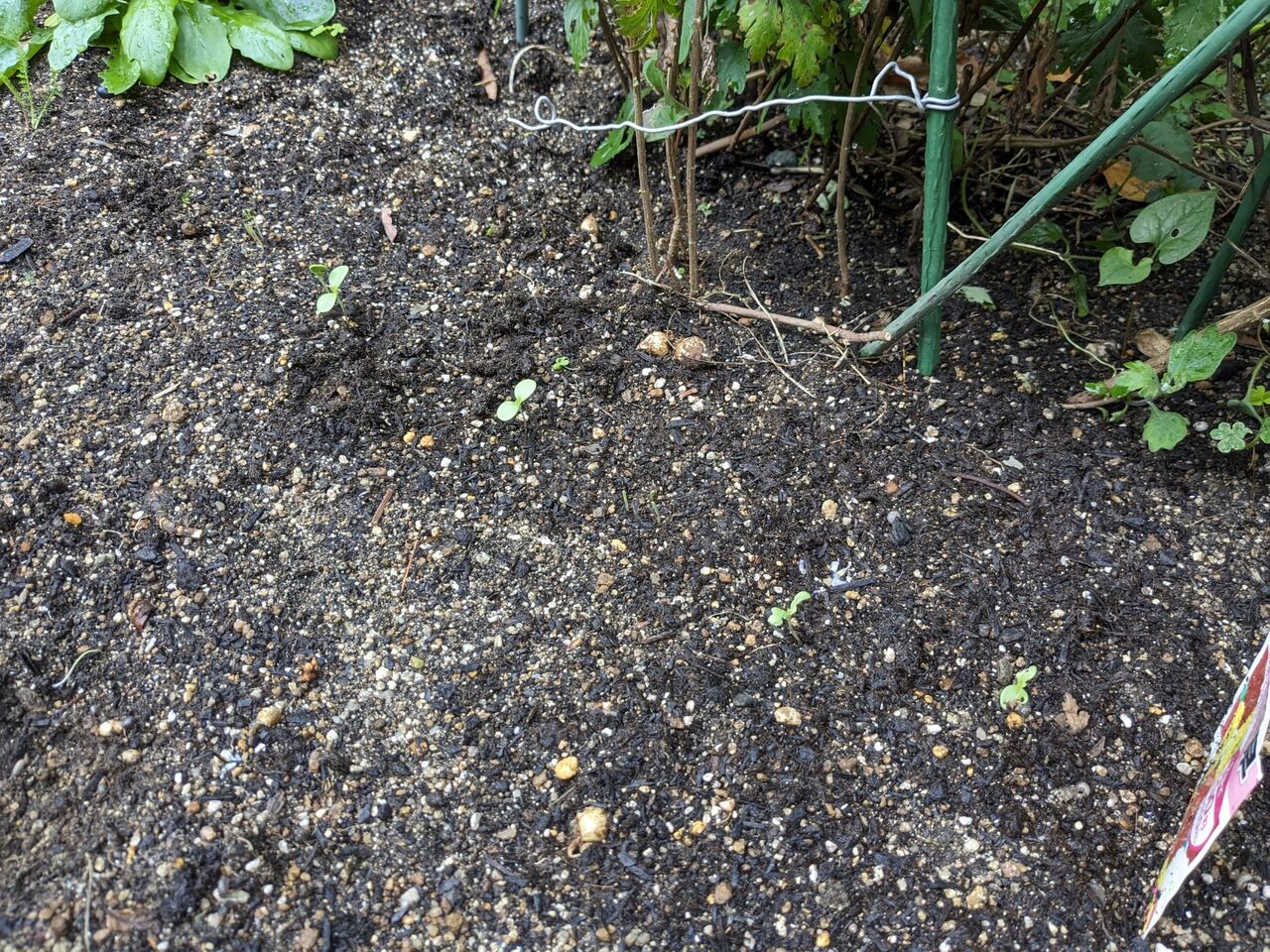 2024年05月27日 綿の種 昨年いただいた綿から、実を取って、種を蒔いてみた。種は綿にくるまれていて、取るのに苦労した。全部は取り切れなかった。夜から、水に浸してから、朝蒔いた。芽が出てくれるといいな。コスモスの種も蒔いた。1週間前頃蒔いた百日草。あまり芽が出ていない。インゲン ダンゴムシとの闘いになる。花の元に小さなキュウリが付いている。青じそは芽が出ていたものを植え替えた。バジル2株は買ってきた。ピザに欠かせない。