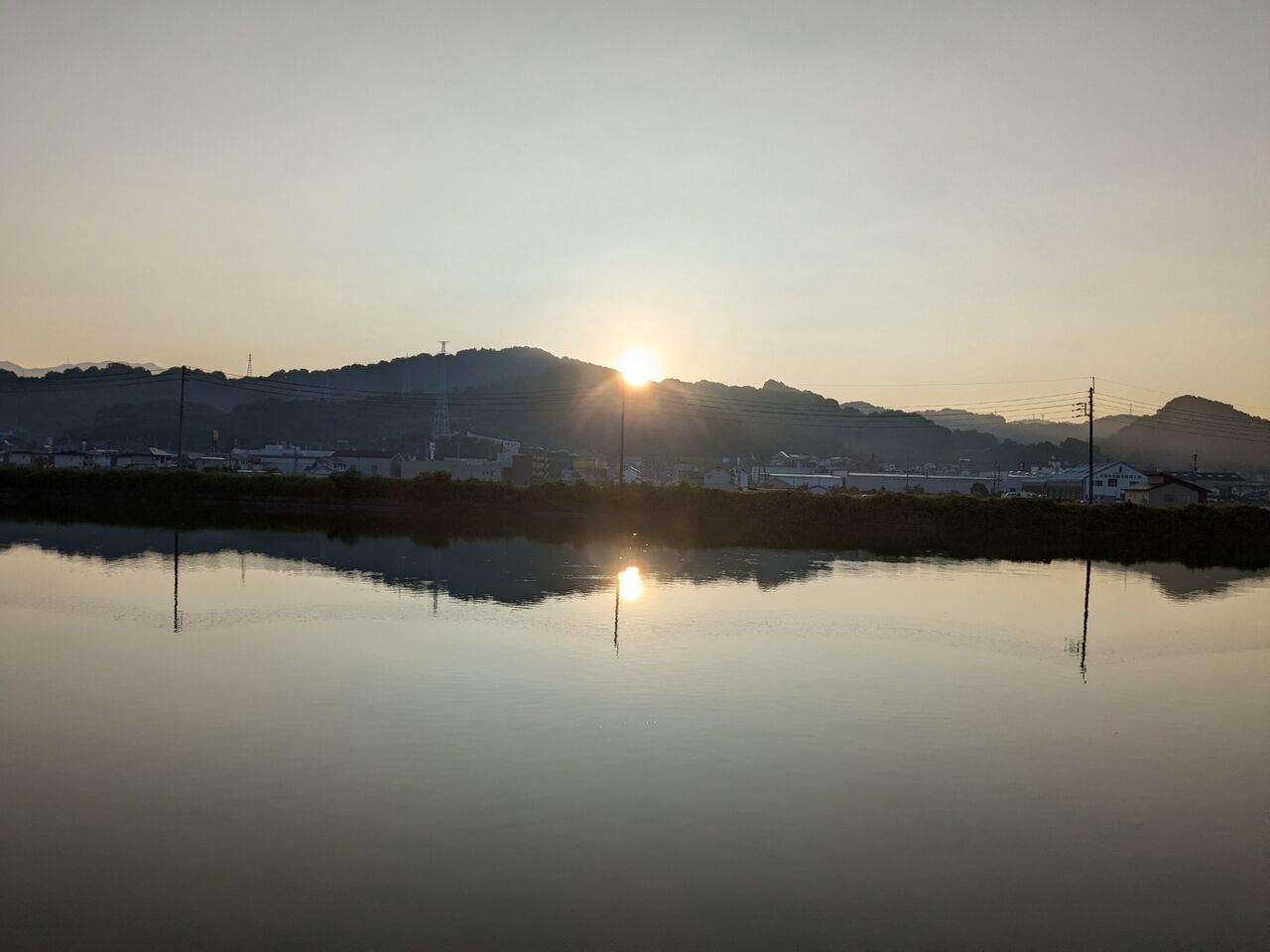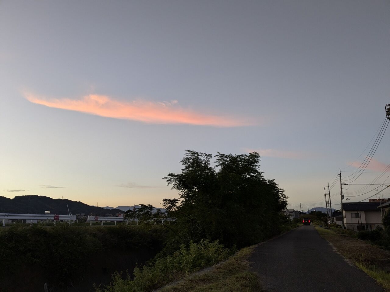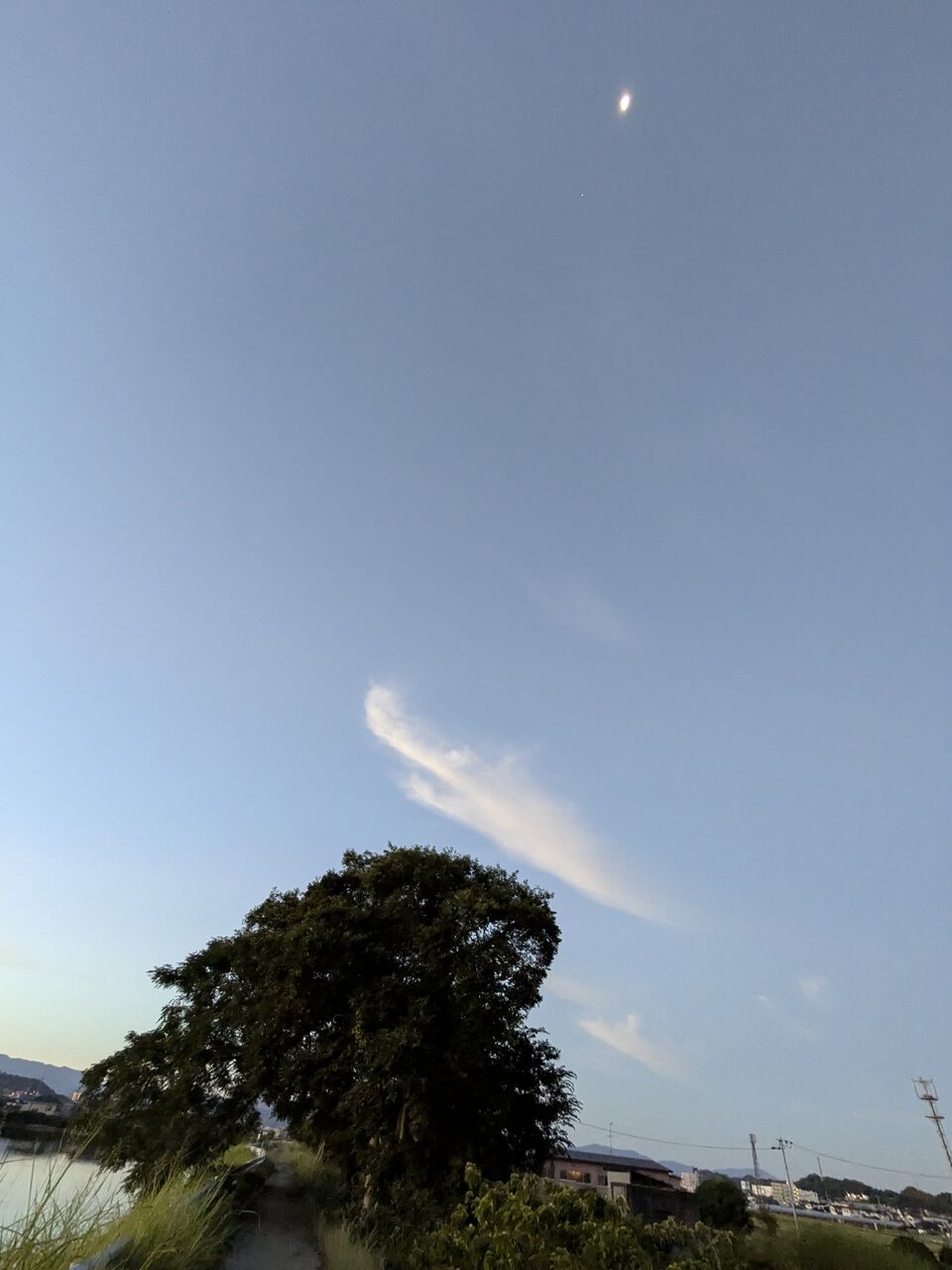 2024年09月24日 朝、散歩 突然に、涼しくなった。朝、5:15頃、散歩に出る。起きたら、とにかく歩きに行くことにした。まだ、薄暗い。だんだんに明るくなっていく。真上に半月と茜雲。6時頃、家に着く。約45分、5000歩。