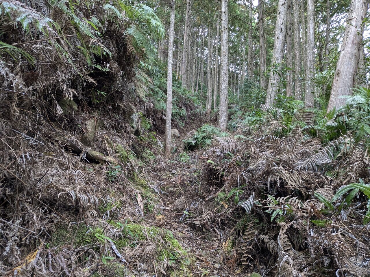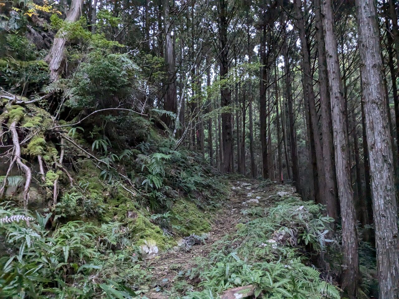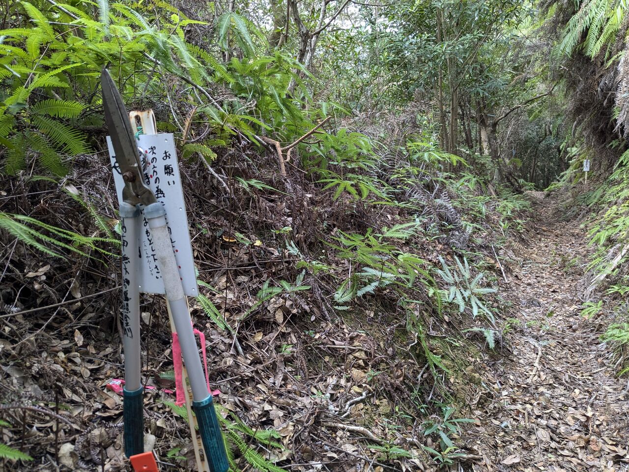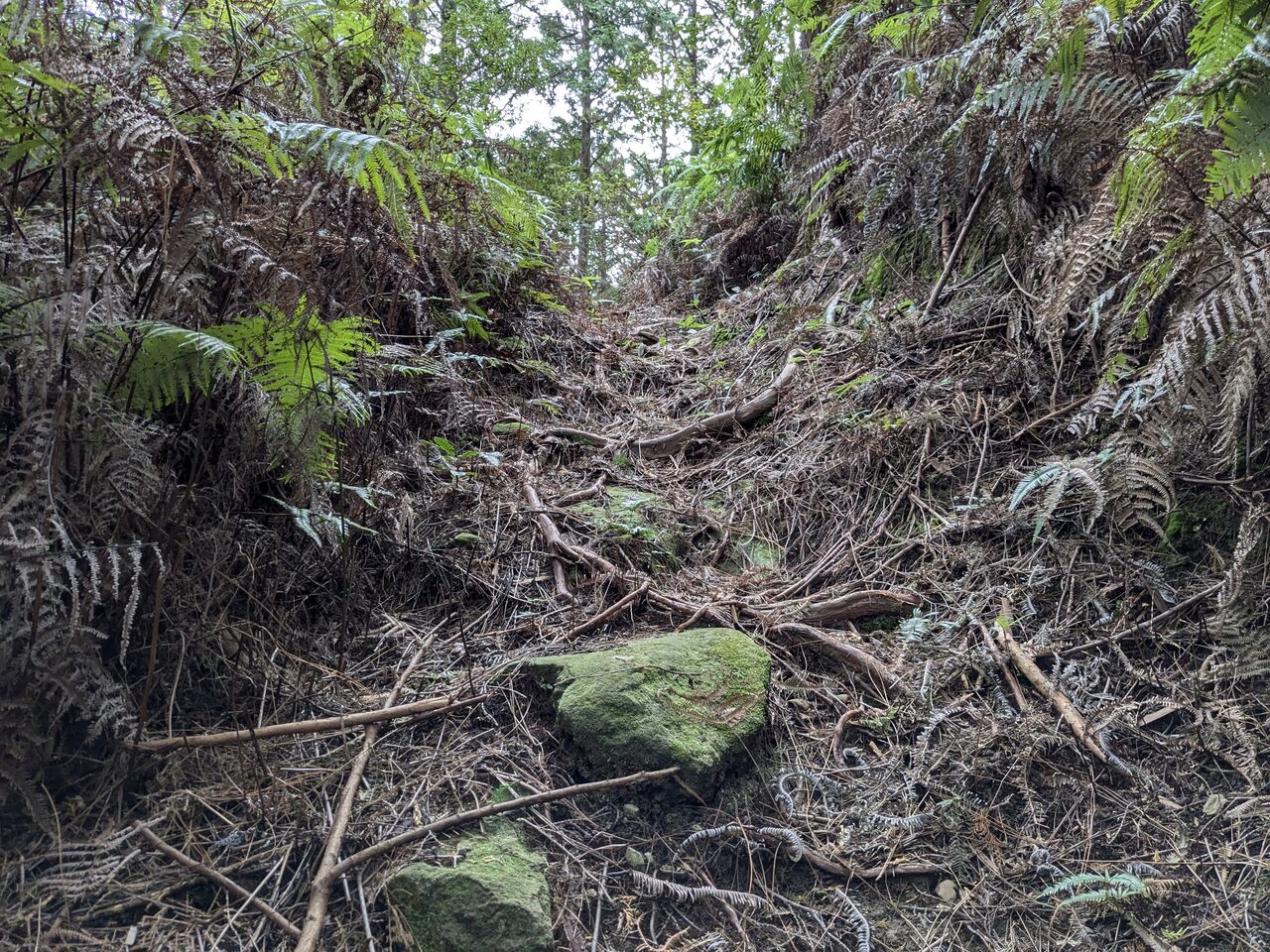 道しるべと、ほとんどない記憶を頼りに、上がっていく。シダが刈ってある。