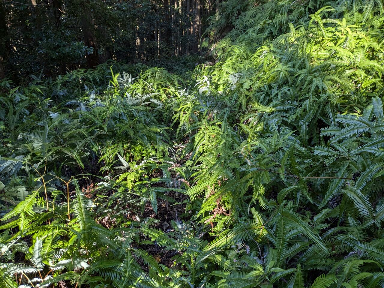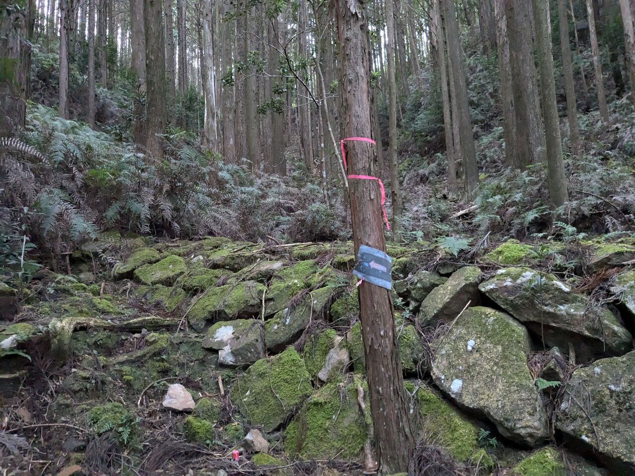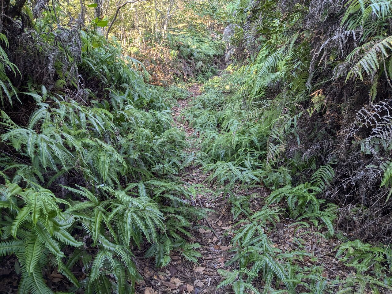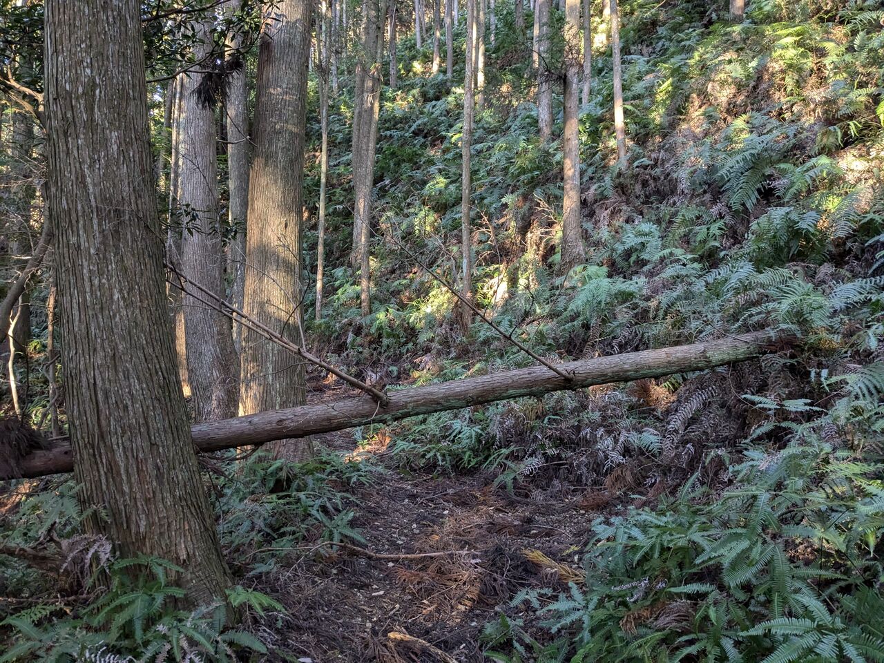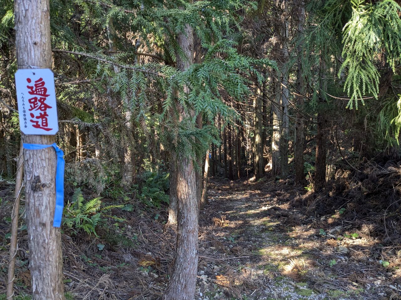 道しるべと、ほとんどない記憶を頼りに、上がっていく。シダが刈ってある。