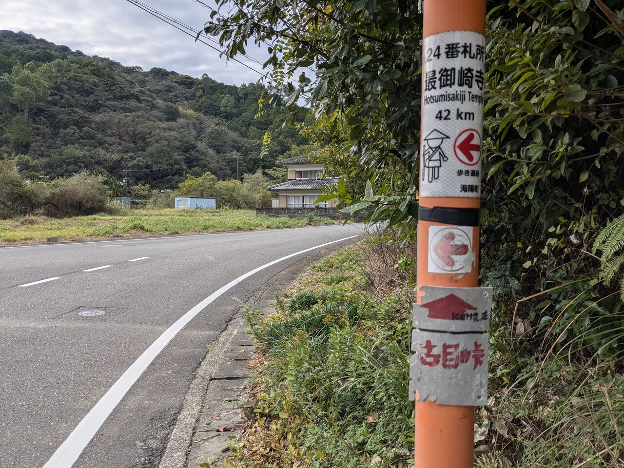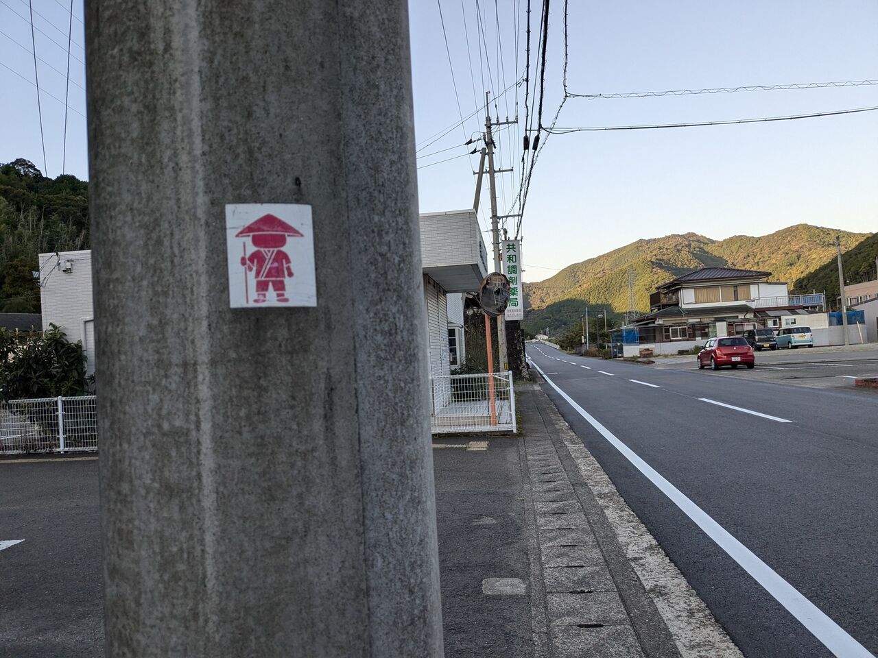 町の人が声を掛けてくださる。「えーっ、山を下りて来たん?」「サルが出んかったか?」「昨日も1人おったな。」「きーつけてな。」「バスが来たら、手を振ったら乗せてくれる」とか。言葉は少し違うかもしれないけど、町の人はみんな親切で優しい。
