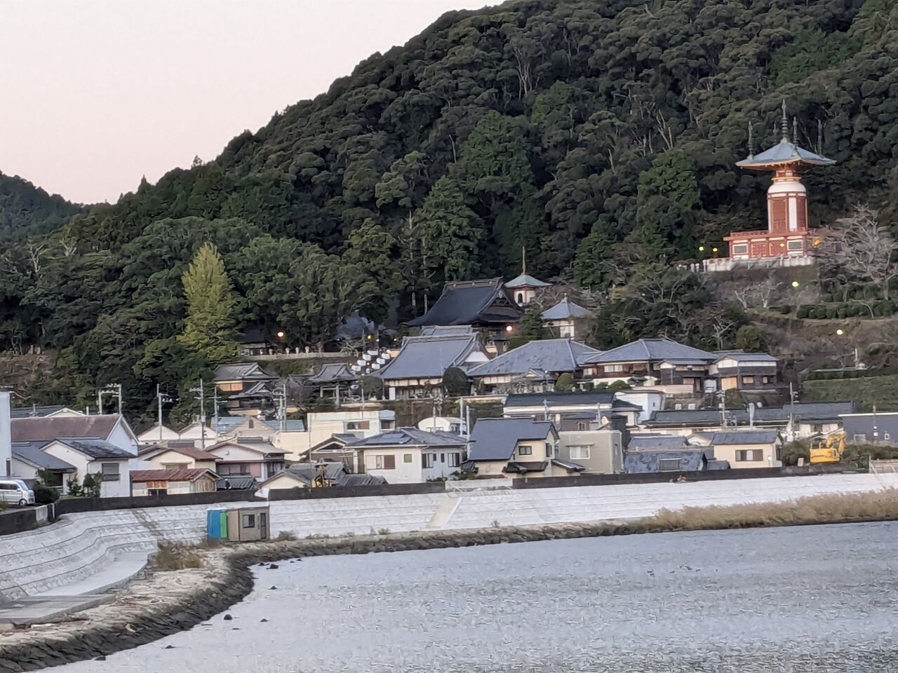 外はまだ真っ暗。橋の袂のローソンでパンを買っていく。宿を出たら、ローソンの明かりが見える。