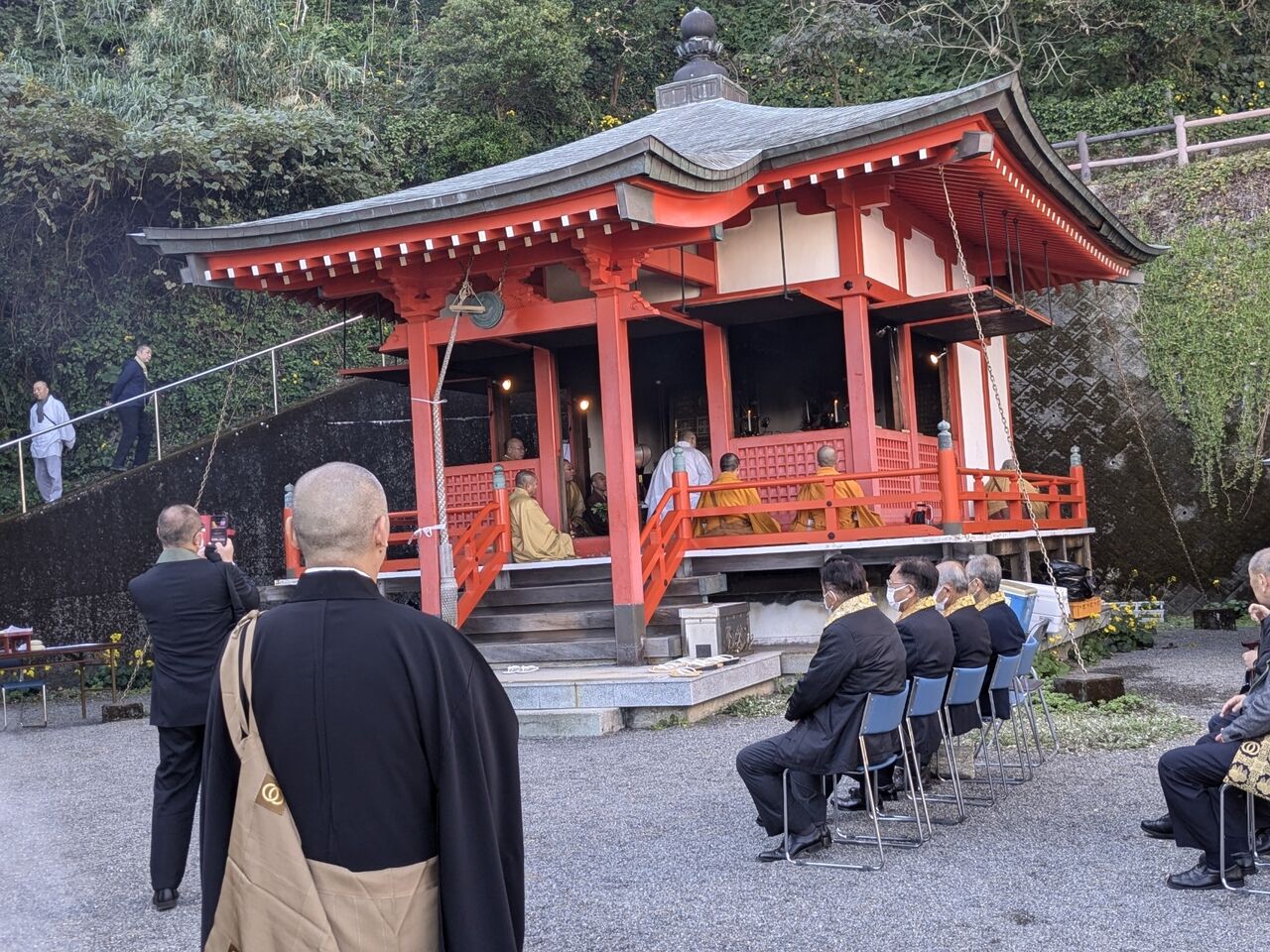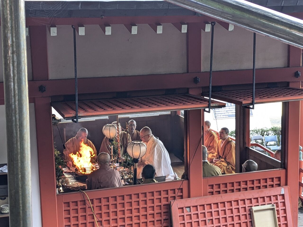 10:31 ここにある「来影寺」で丁度、護摩法要が行われていた。今日が丁度、その「断食護摩結願法要の日。4日間、朝4時から5時まで54座の護摩が焚かれて、その結願の日だそうだ。
