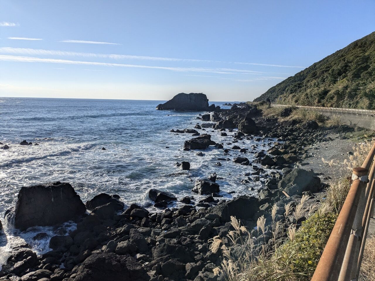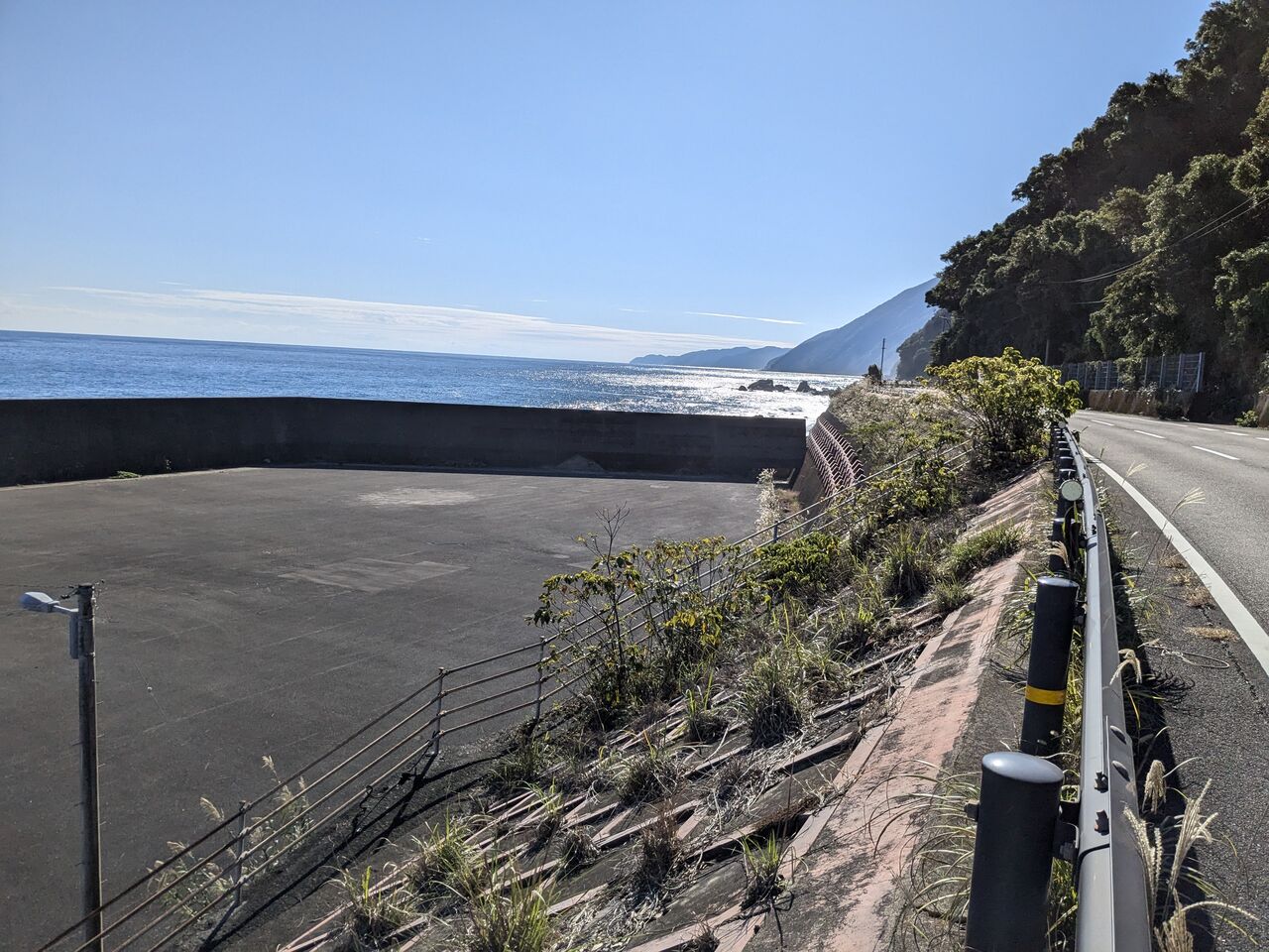 すぐ前の車道を通って、「道の駅キラメッセ室戸」に行く。そこから奈半利駅行きのバスがある。約3キロ海岸沿いを歩く。この道を歩くのは初めて。