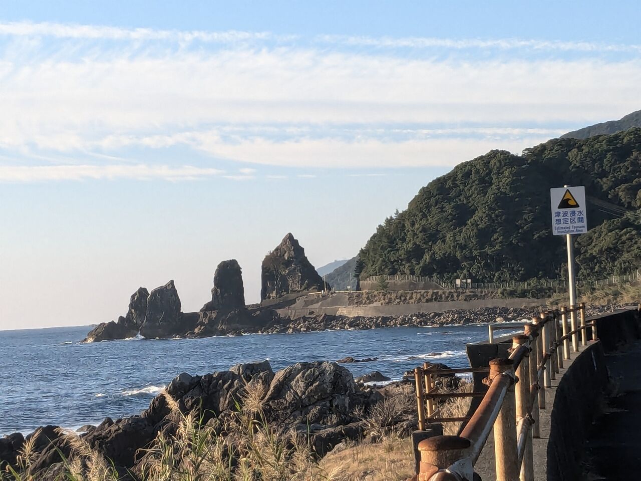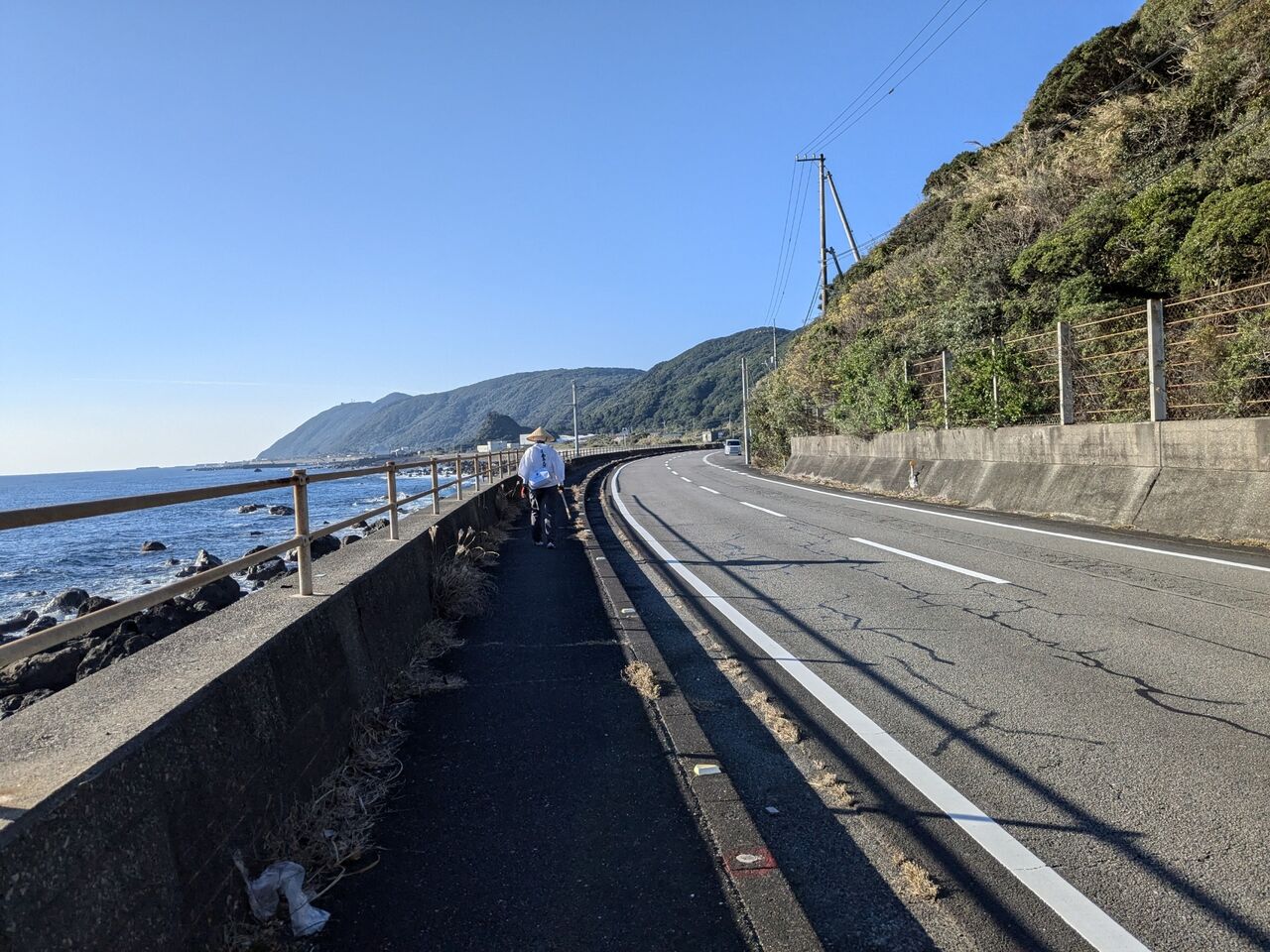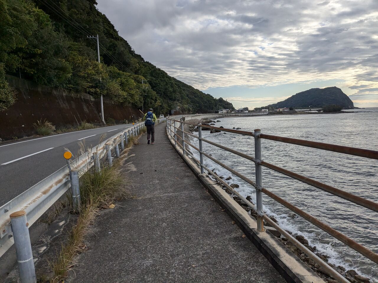 8:15 向こうから逆打ちの男性、「今、4巡目、逆打ちは2回目、通し。外国人向けのアプリだけど、これで 殆んど、道に迷うことはない。」と遍路道が入っていて、自分の位置が分かるようなアプリを見せてくださった。今日は、宍喰から日和佐の宿までだそうだ。