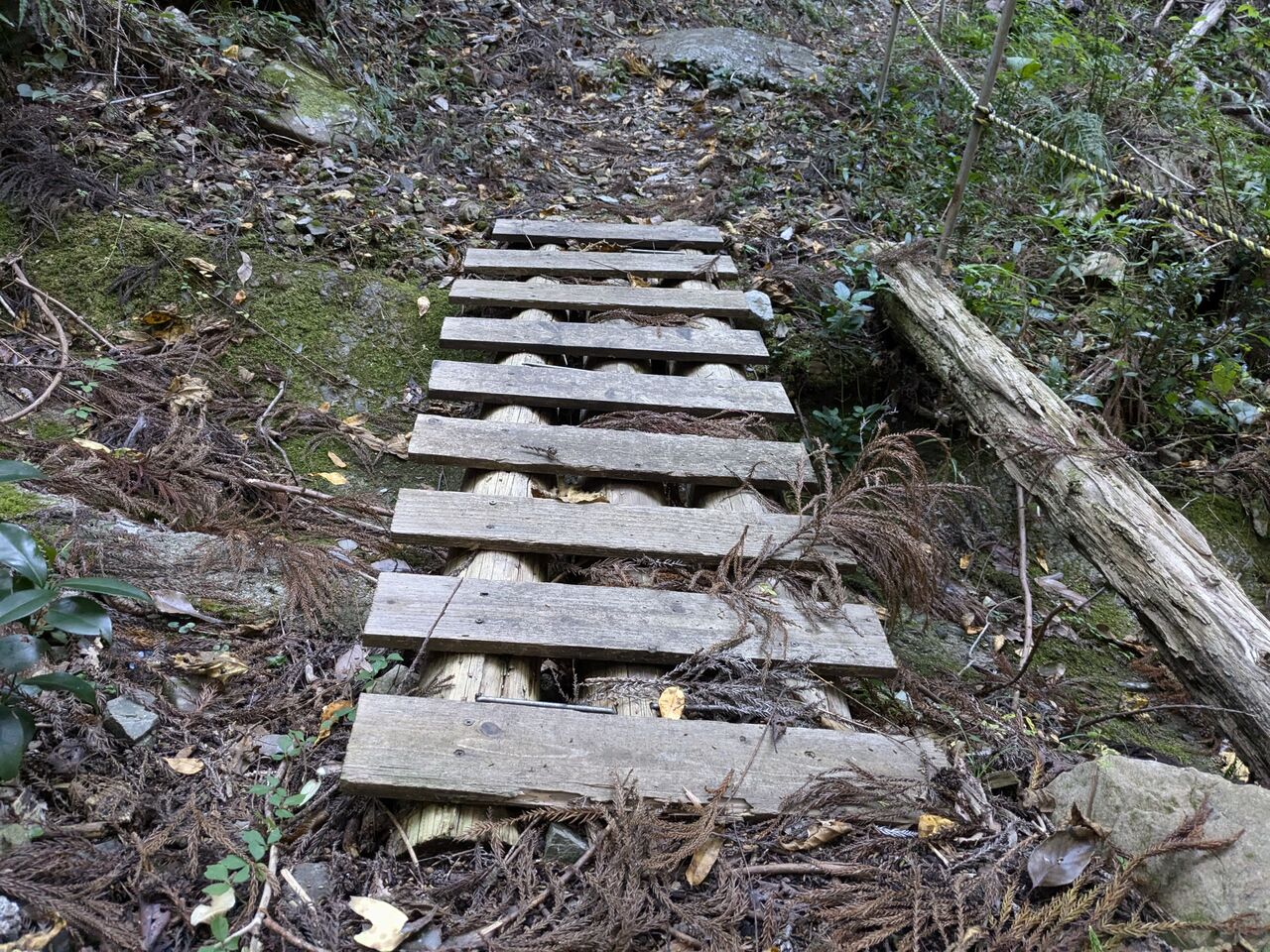 「丹前峠」はこの春に続き2度目だけれど、私にとってかなり厳しかったので、もうこれが最後かな。所々、案内板はあるものの、道が分からなくなったりした。ピンクのリボンが道を導いてくれ、助かった。トラロープが張ってあるところは、トラロープを持っていなかったら滑って谷底に落ちるのではないかと怖かった。シダが繁茂しているところもあった。