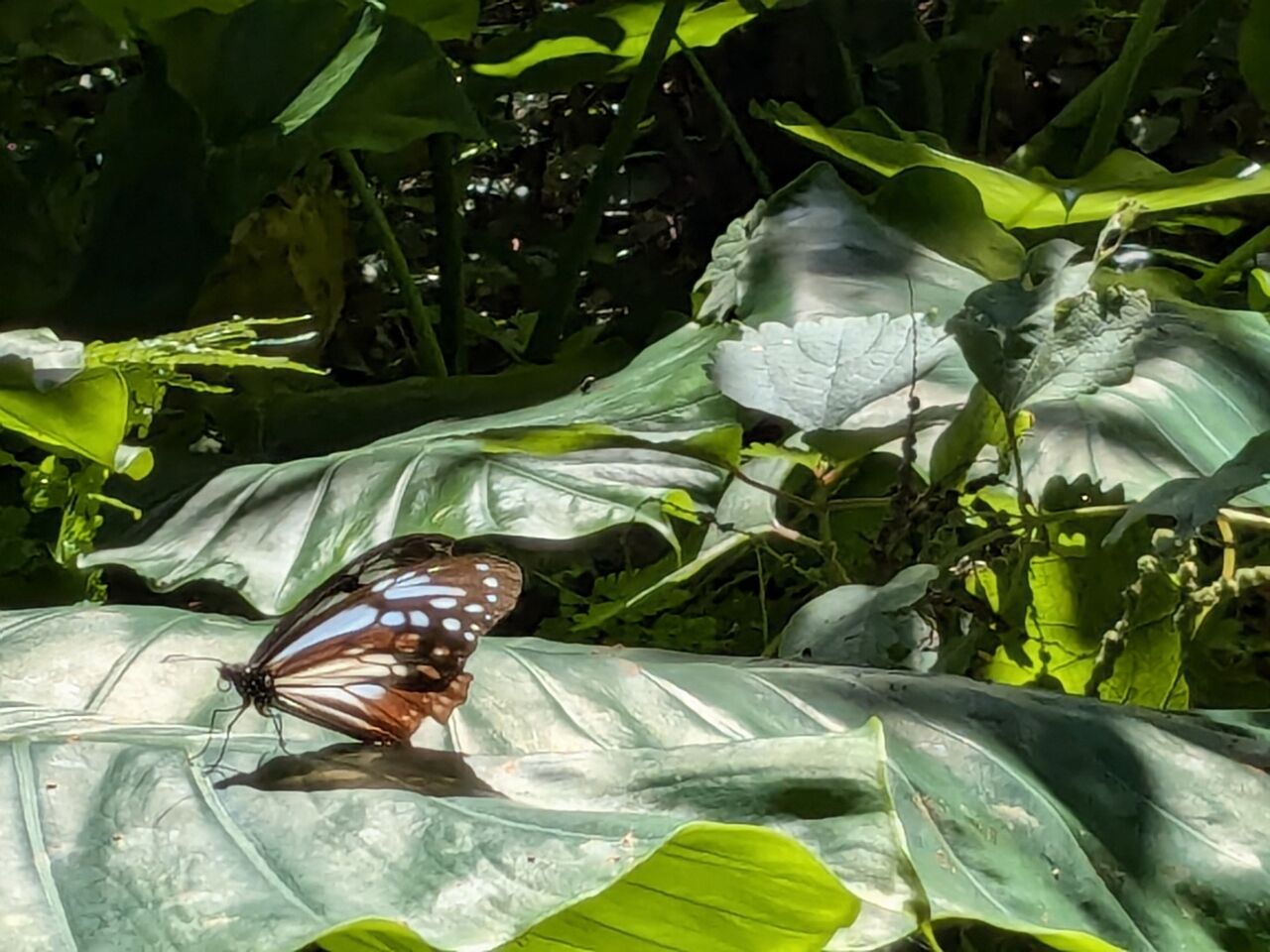 11:09 丁度、2羽のアサギマダラがやってきた。以前もこの辺りでアサギマダラに出会ったことがある。