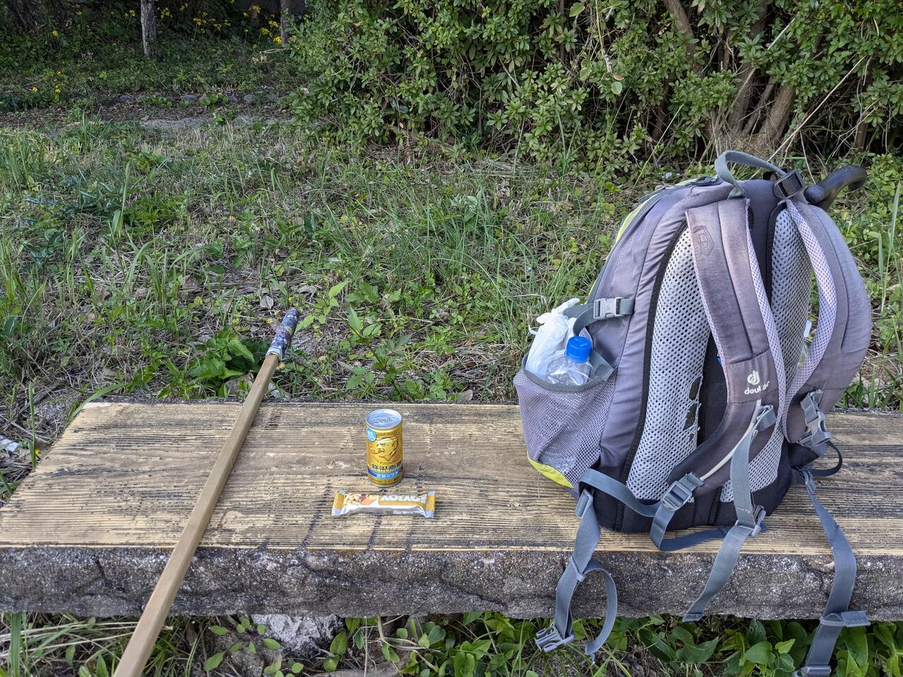 下りながら、お昼。宿で作ってもらったお結びとソイジョイを食べながら下りた。(注 お結びを歩きながら食べたのは、生まれて初めてだと思う)