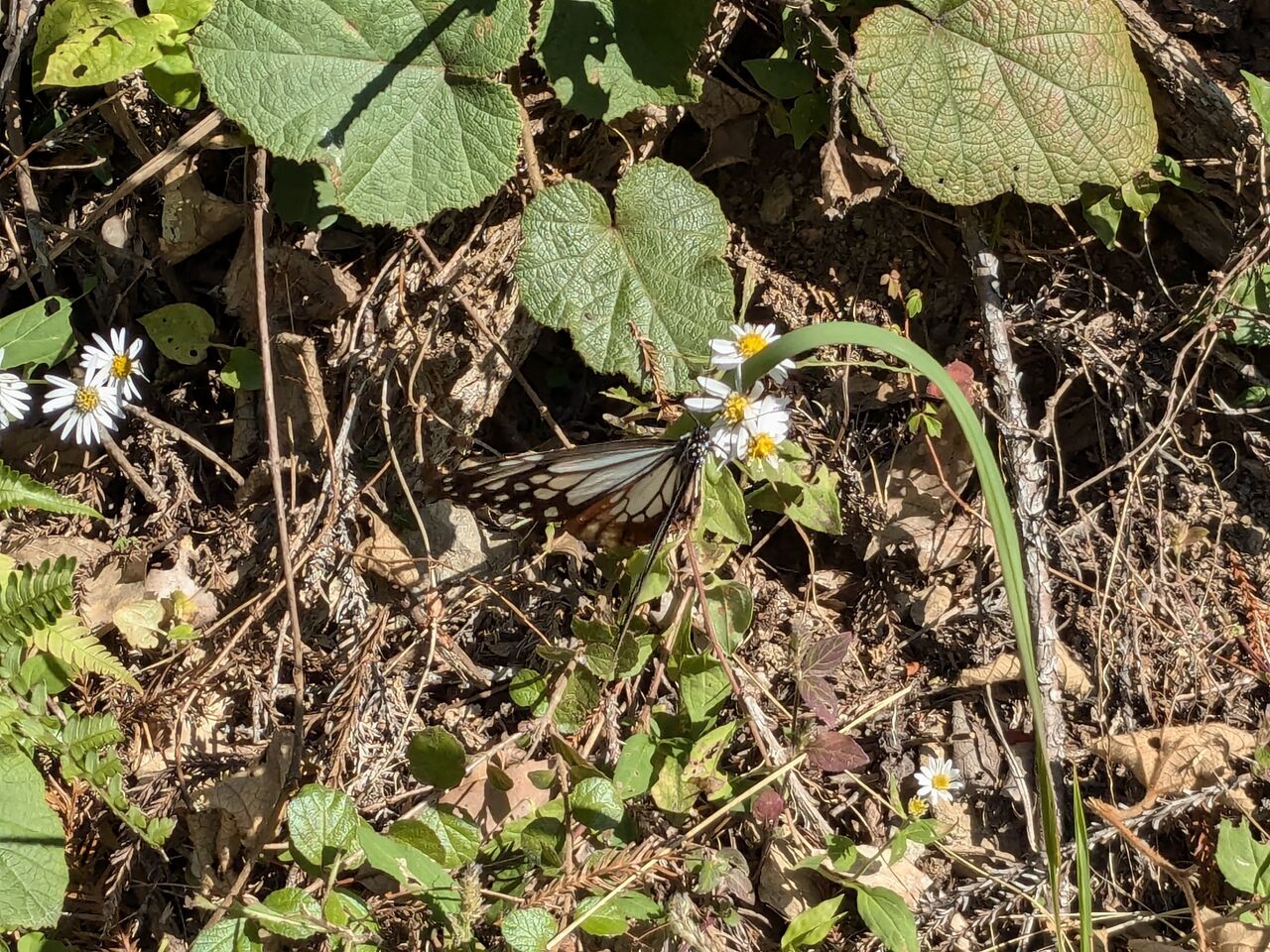 10:38 上からの湧き水を田に入れるための管をみているというおじさんと話していたら、そこに黃蝶。写真を撮ろうとしていたら、ナント、そこにアサギマダラ。両方の写真を撮った。おじさんの話しによると、3年くらい前は、畑にフジバカマをいっぱい植えていて、そこにアサギマダラもいっぱいきていたとか。今はフジバカマは終わり、アザミの花にきていると。アサギマダラ1羽だけ、一瞬の後に飛び去っていった。黃蝶はその後、何度も何度も来てくれた。