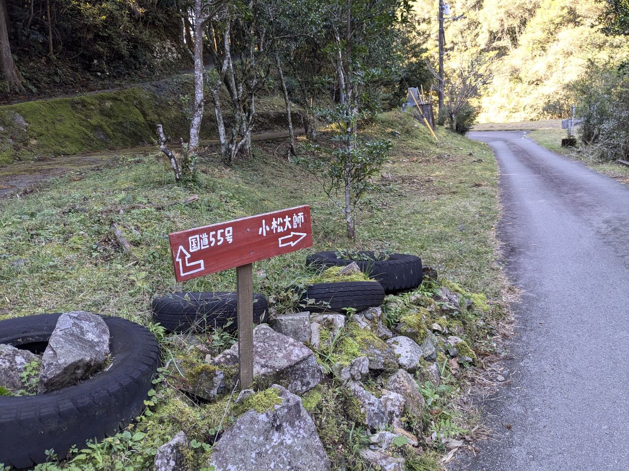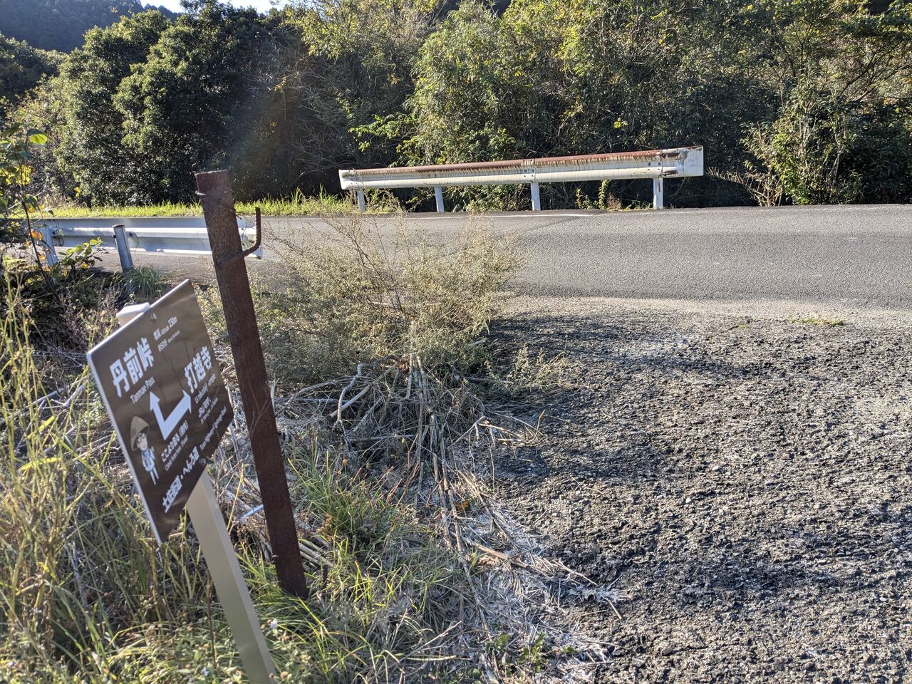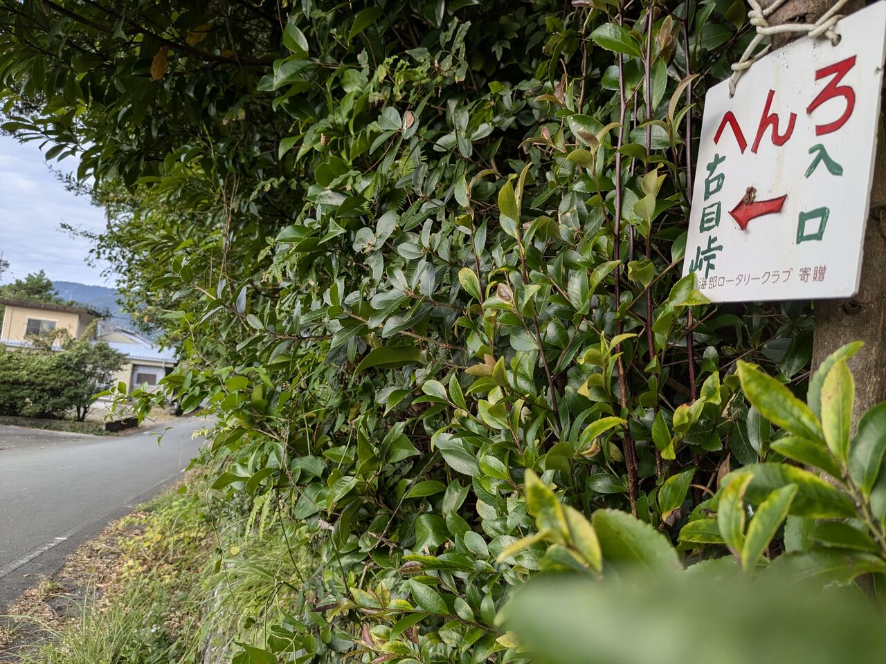9:11 へんろみち保存協力会と行政シールは古目峠へ行くようになっていない。車道に上がっていくようになってる。