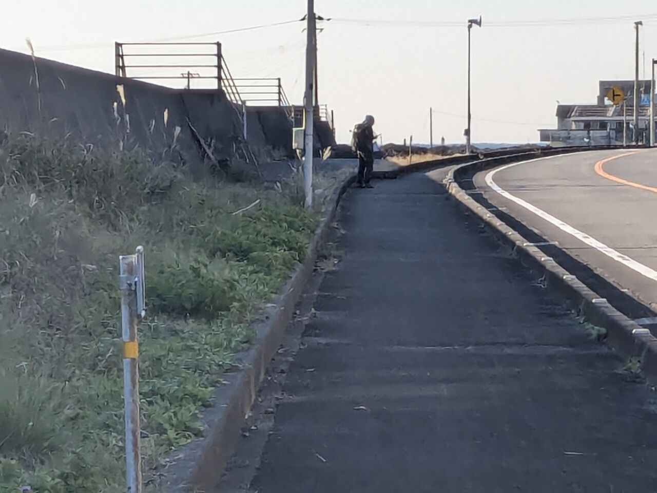 11:42 道路の向こう側を逆方向にいく男性、手を振って挨拶した。