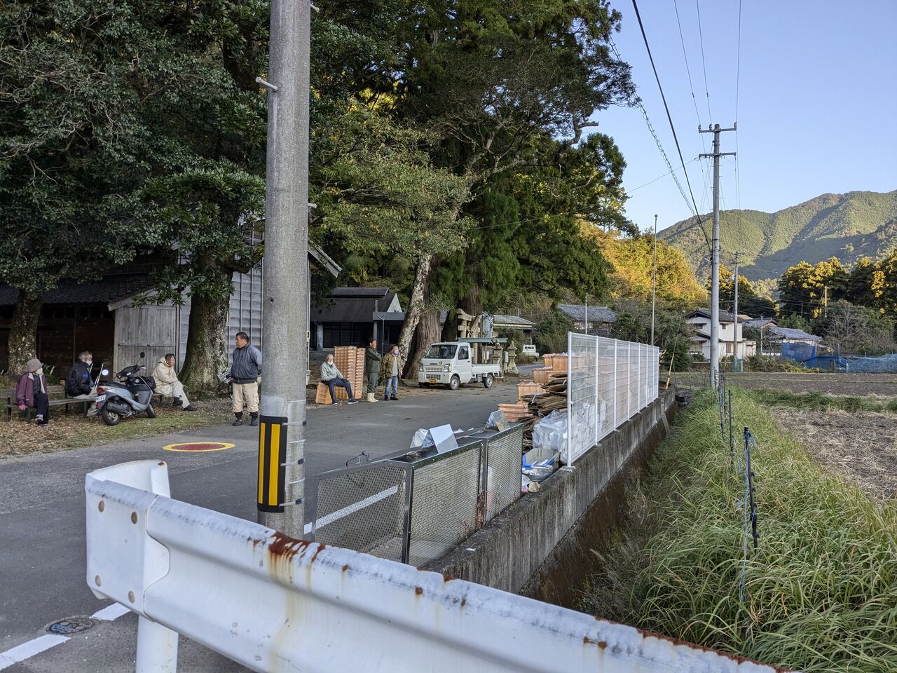 神社前で、地元の方が何かの作業をされていた。