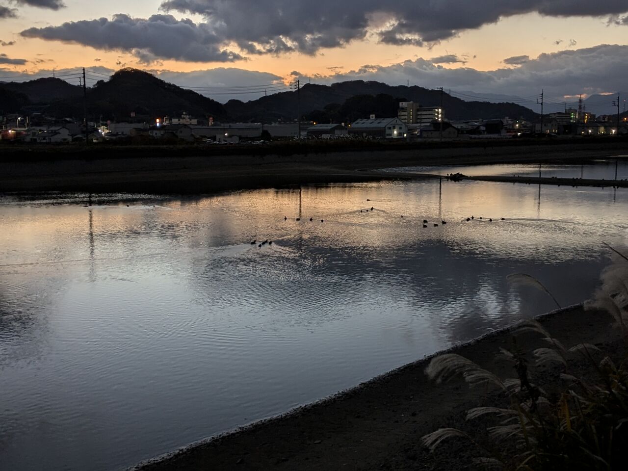 朝、6時くらいから散歩に行く。出発する頃は、まだ真っ暗。次第に明るくなってくる。