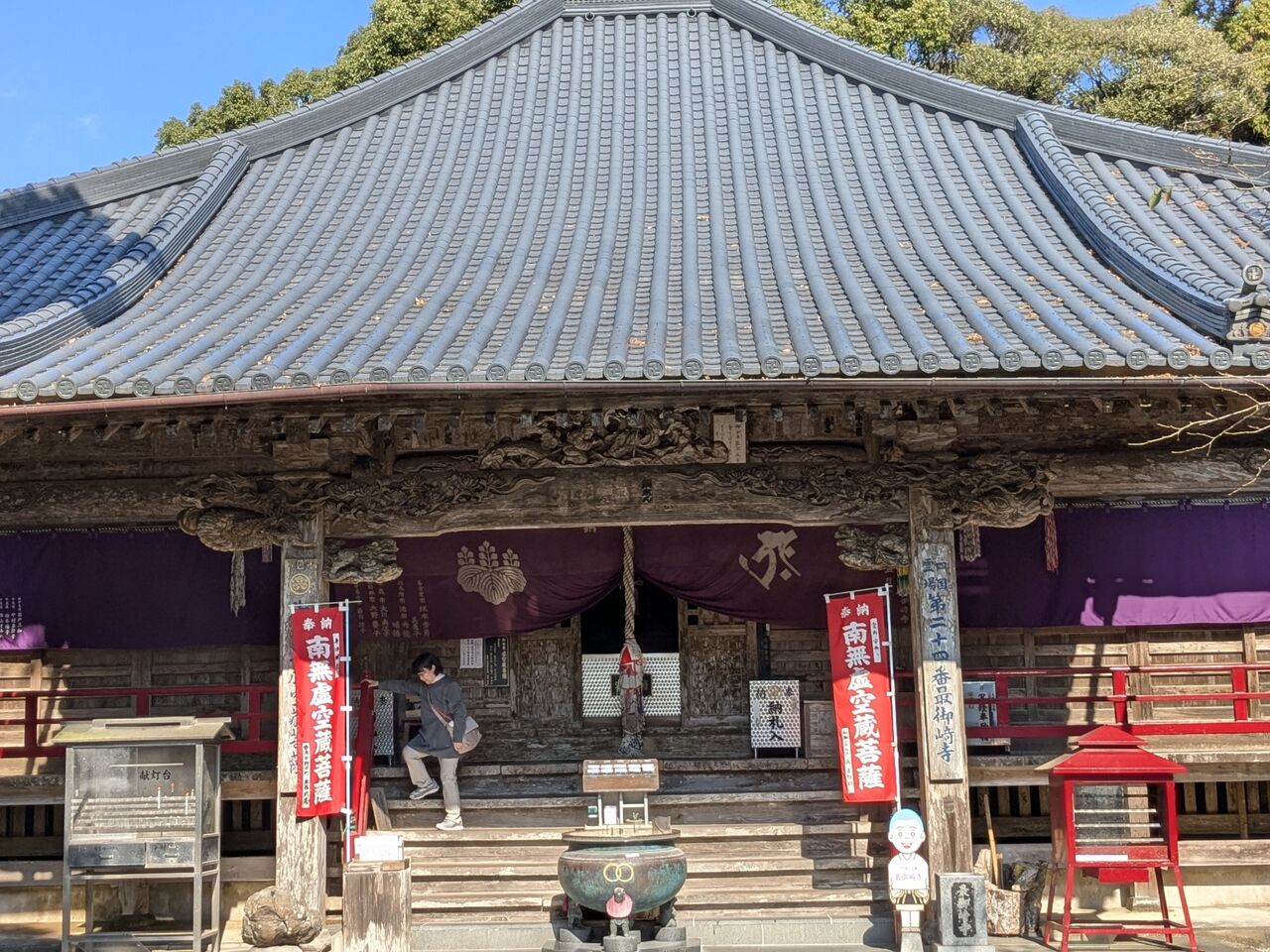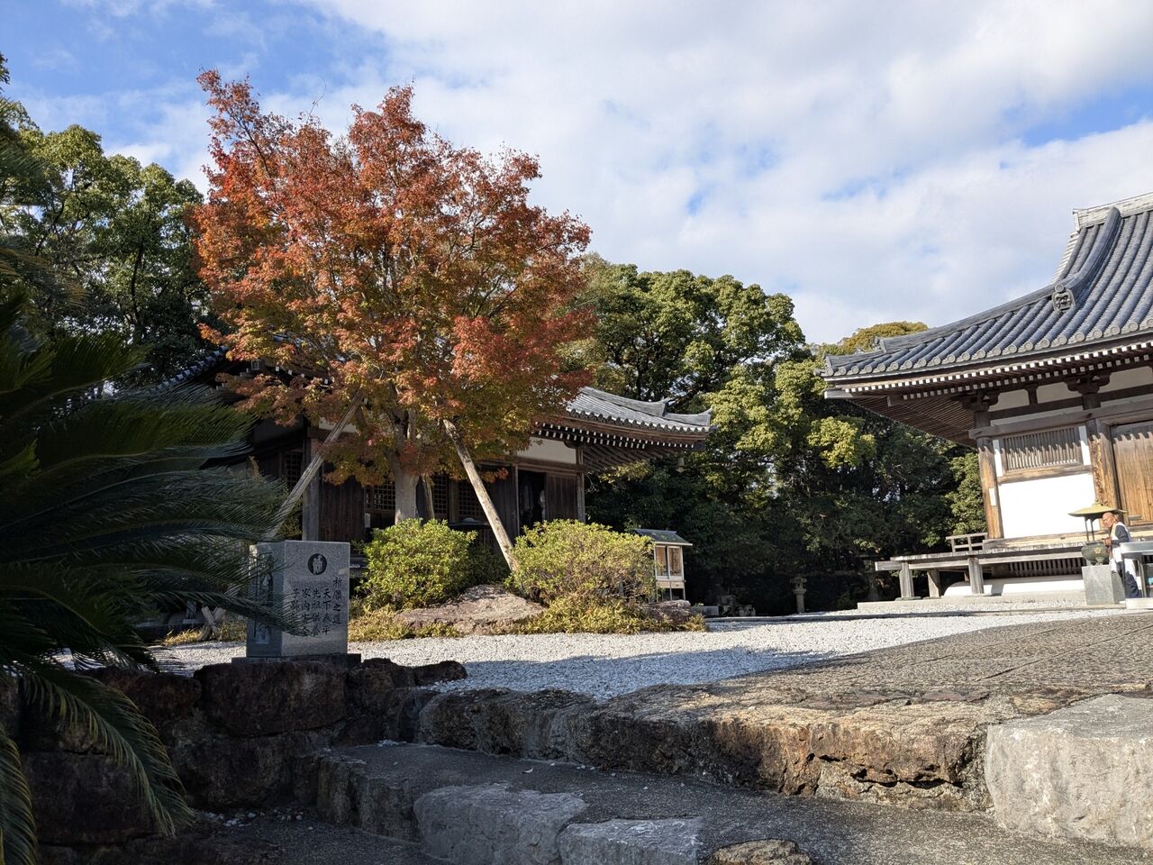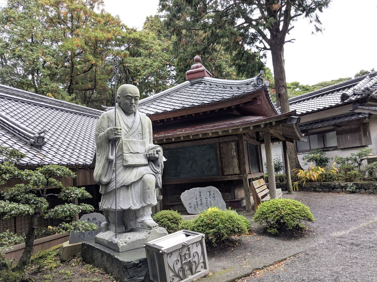 ベンチに荷物を置いて、お参りしようとしていたら、男性のお遍路さん。少し話す、「歩き遍路を2回した。今回は好きな道だけを歩いて、そうでないところは電車やバスに乗る。今回1番から歩き始めて、今2週間くらい。お参りはここまでで、明日は帰る。これから丸亀までJRに乗り、丸亀で一泊して、明日家に帰る。」と。焼山寺までの道をどうするかとか話した。