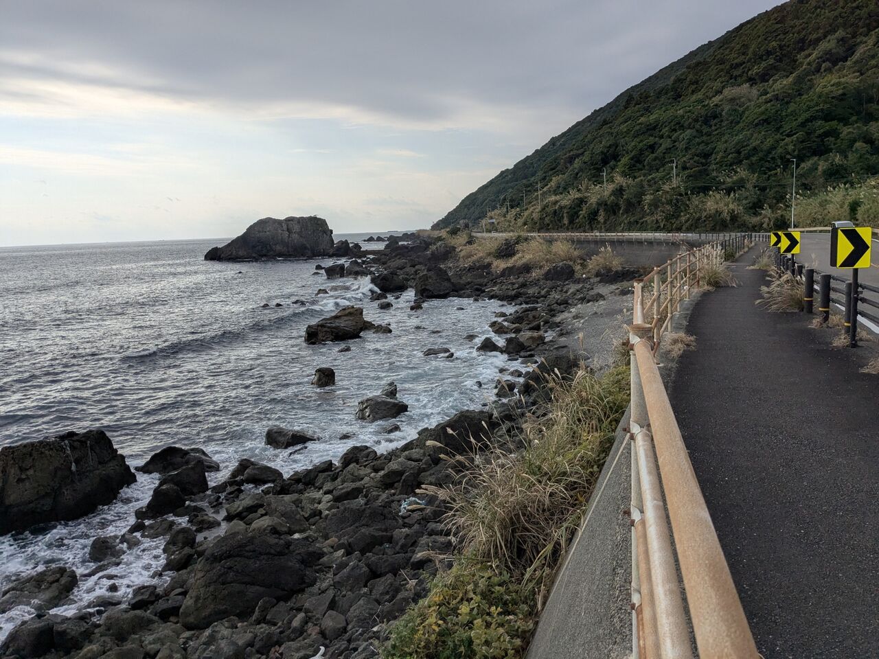 足の調子が悪く、2回、バスに乗った。「ジオパークセンター」ー「岬ホテル前」(約6キロ分)と「岬小学校前」ー「室戸」(約4キロ)。歩いたのは「民宿橘」ー「ジオパークセンター」(約12キロ)。