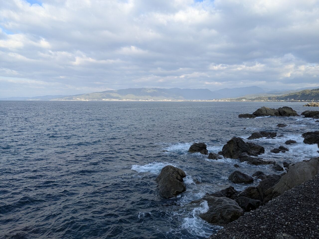 下に下りてきて、海が見えてきた。
