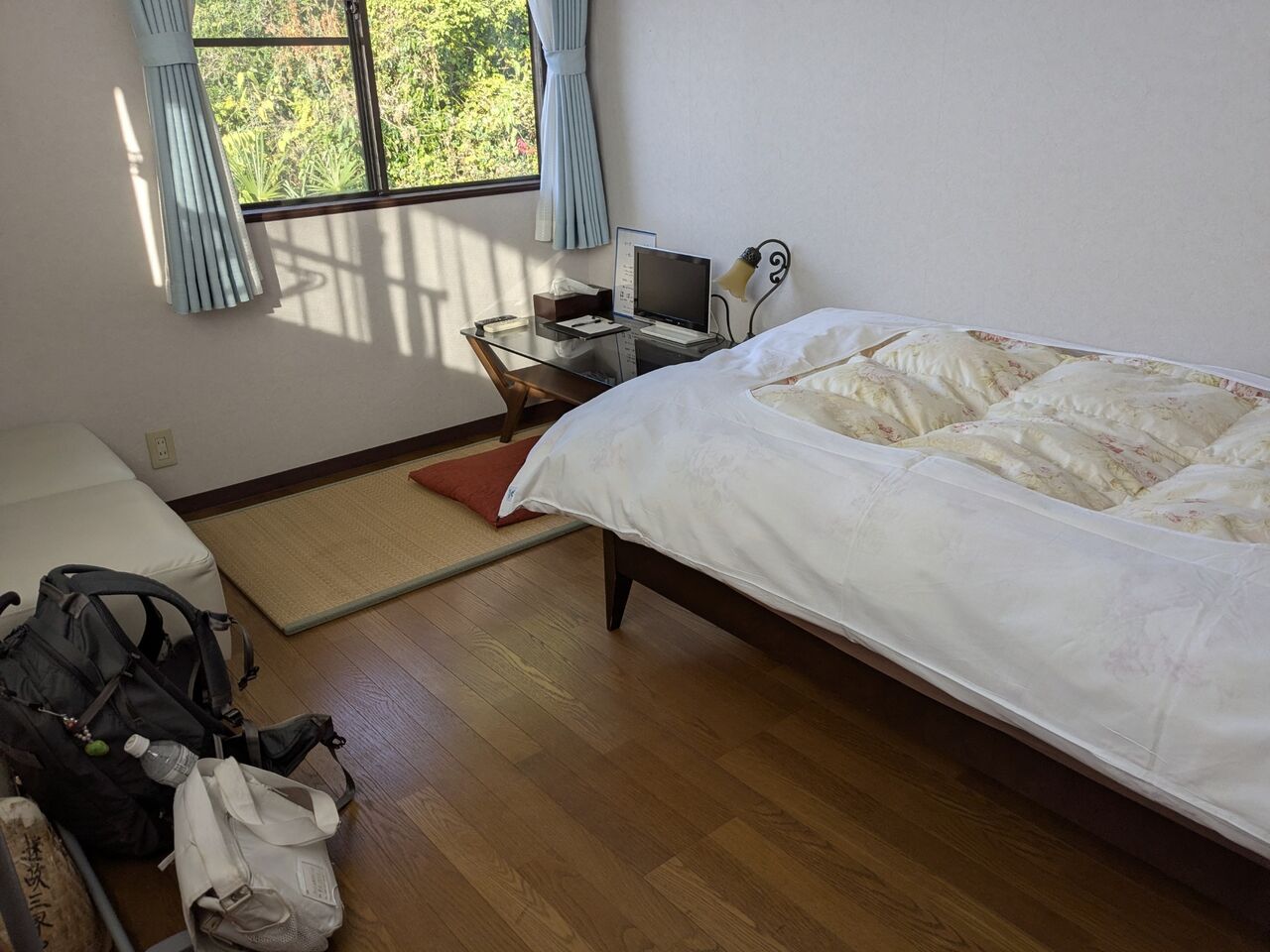 チェックイン。やはり、当たり前だけど、オーナーが変わっている。「花鳥風月」さんだ。以前クラウドファンディングで、「2食付6500円」の寄付をしたが、それがそのまま返礼品になっていて、支払いはない。ラッキー!