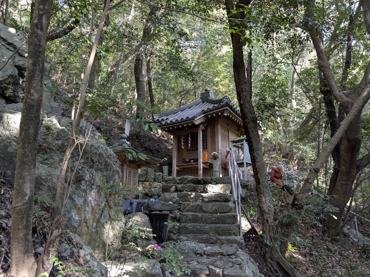 こちらはいつもきれいなお花が供えられている。近くにはトイレも設置してある。20分休憩させたいただく。
