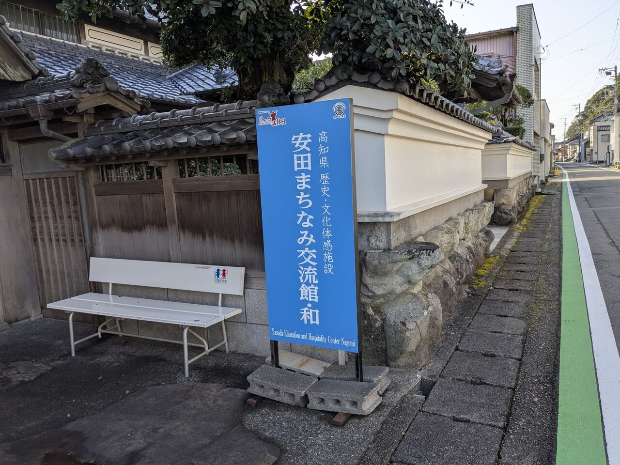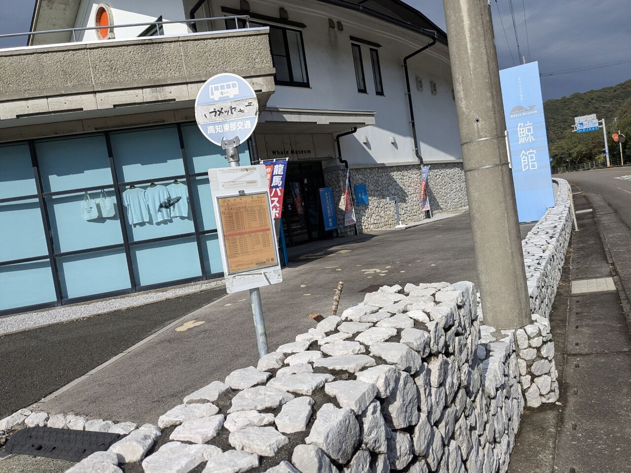 13:39 岬小学校前バス停 13:57発、室戸方面行きのバスがある。20分後には来る。横には階段状のものがあって座れる。ソイジョイをつまんだりした。