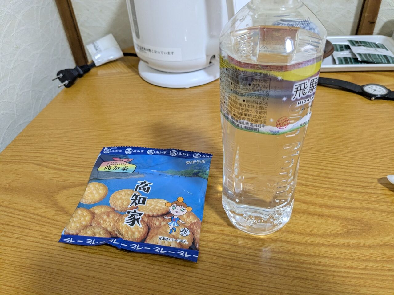 2食付7000円。洗濯機無料、部屋干し。wifiあり。「何本でもどうぞ」という無料のペットボトルのお水が置いてある。