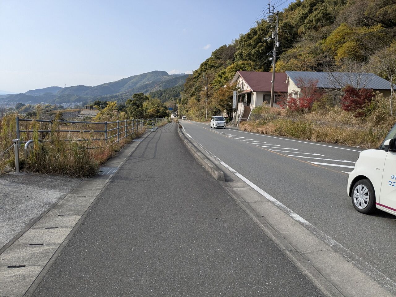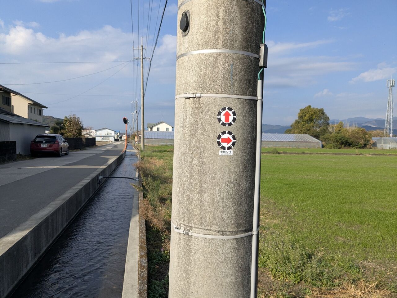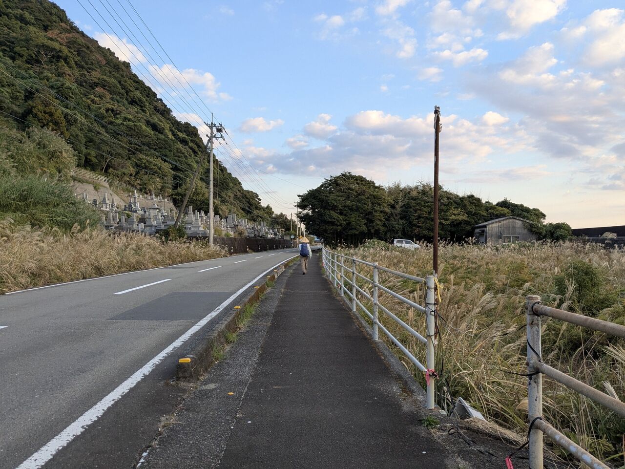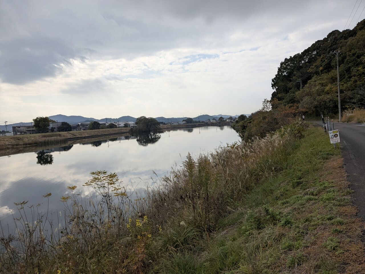9:27 この道しるべがいっぱい付いていて、迷うことはない。でも右にいく道しるべは初めて見た。道しるべの下に、「景観が良い道」とある。地図を見たら、寄る予定のファミマを通りすぎてしまいそうなので、いつものように真っ直ぐ行くことにした。