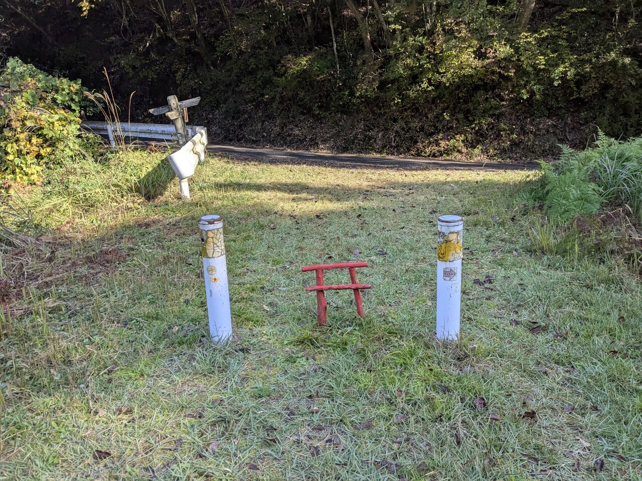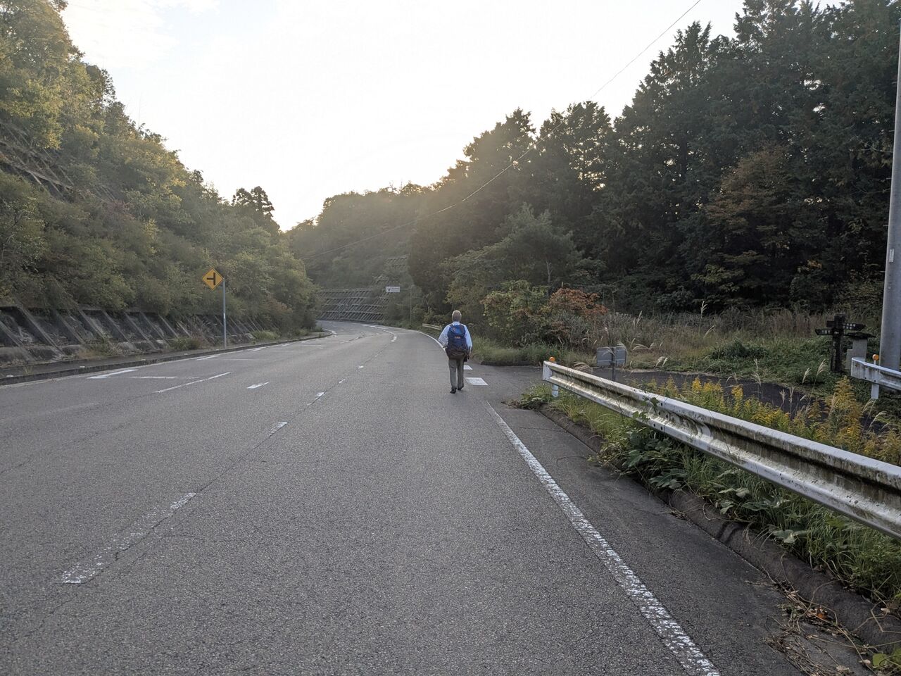 8:43 車道に出るが、「旧道まで150m」の札がぶらさがっているだけで、それが右か左か分からない。それこそ右往左往した。20分くらい。