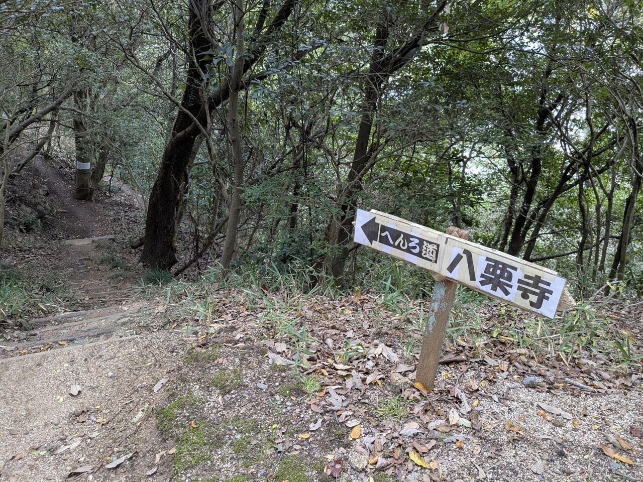 9:22 卯辰越えをして1番に下りる道と金泉寺に下りる道との分岐。