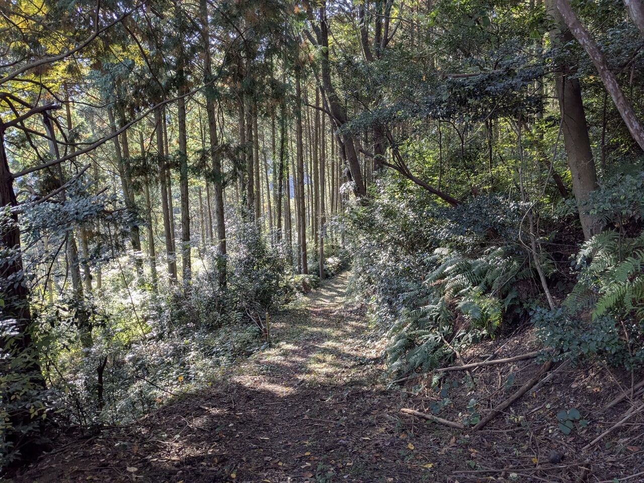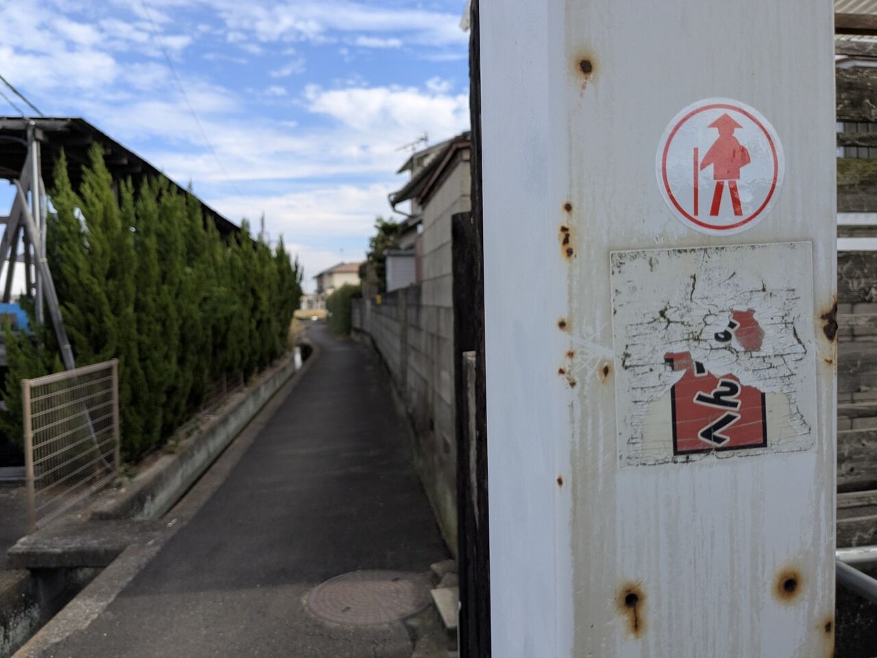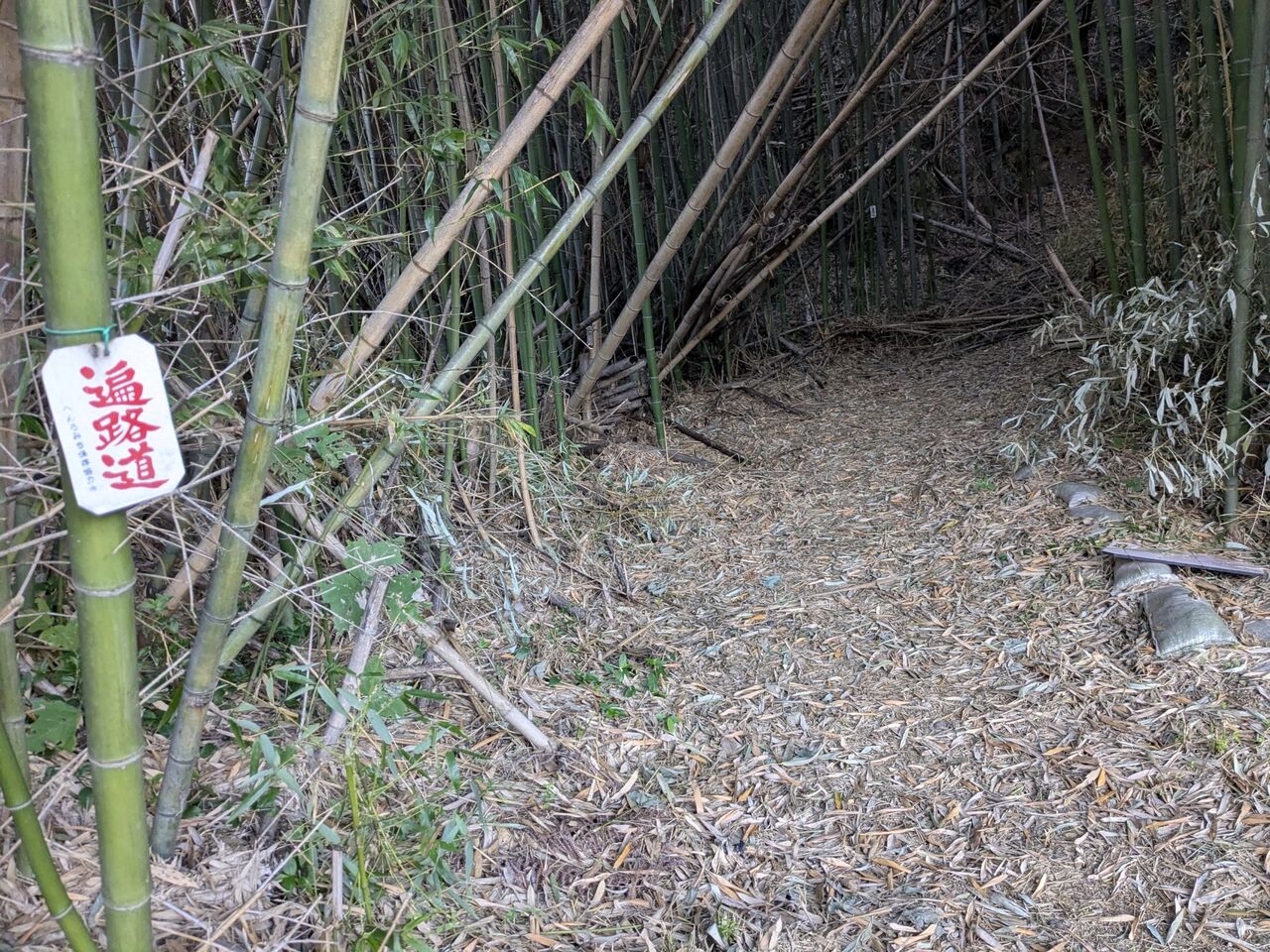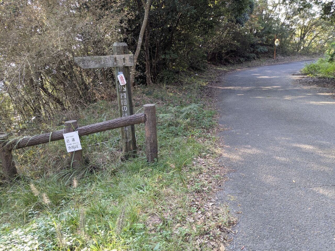 9:14 しばらく歩いたら、「近道」とあり、道しるべ札もあるので、下りてみる。