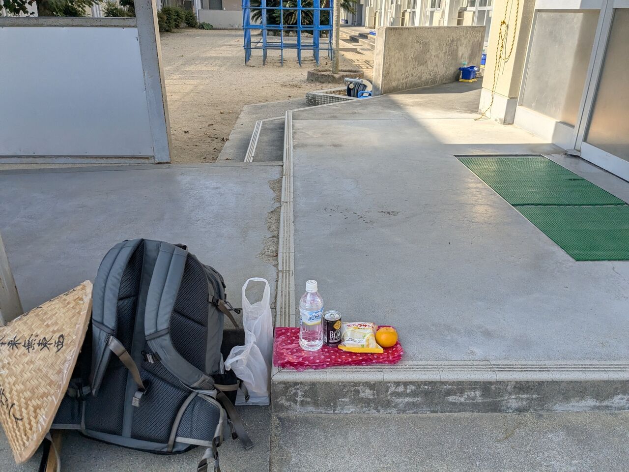 11:19 小学校があって、見渡したら、階段状のものがあったので、そこをお借りしてお昼にする。今日は土曜日で学校はお休みだ。ひょっとしてして私は不審者?
