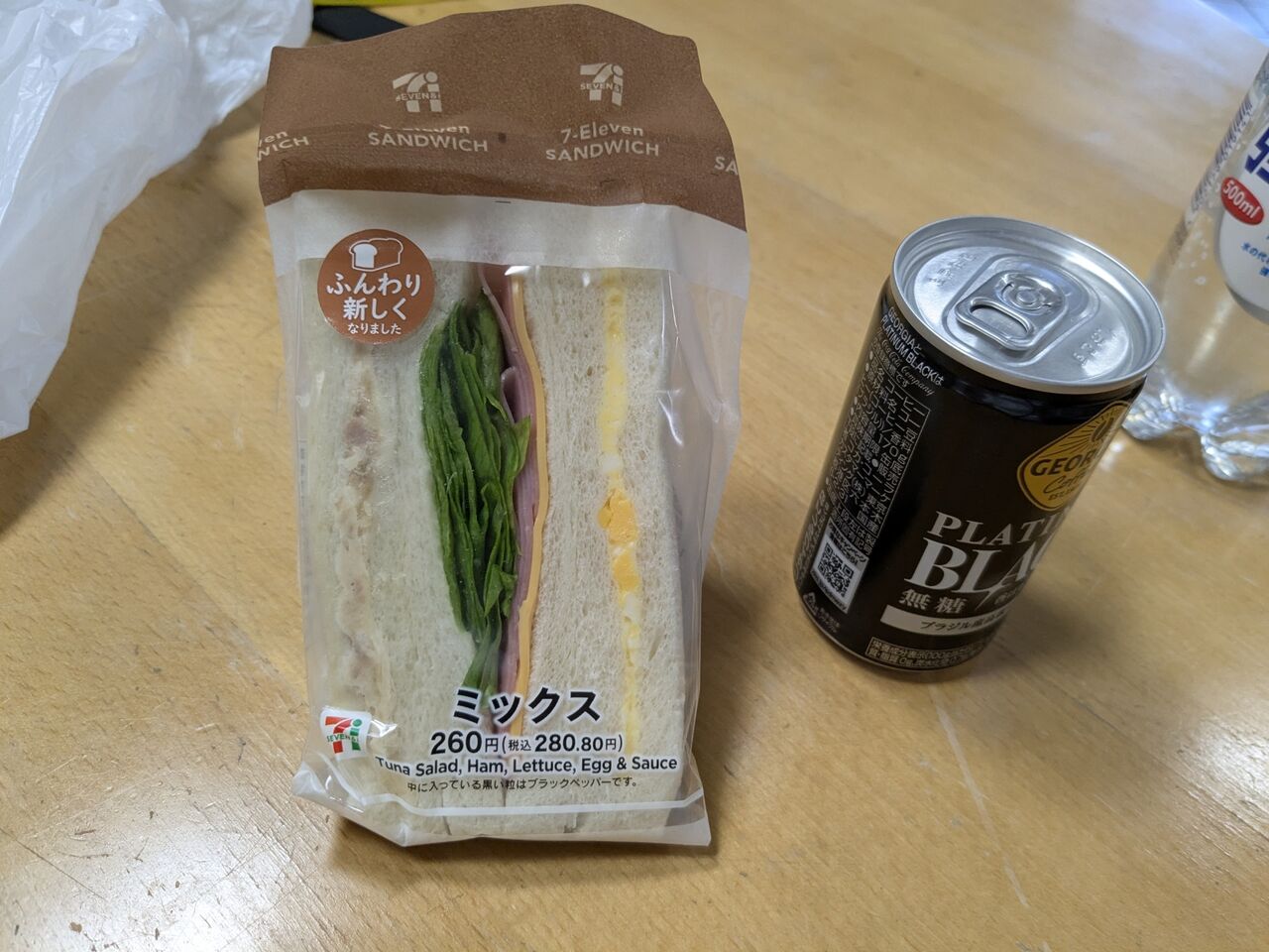 しっかりと、自販機があったので温かい缶コーヒーは買っていた。スナックサンドとみかん。15分で、さっと食べる。
